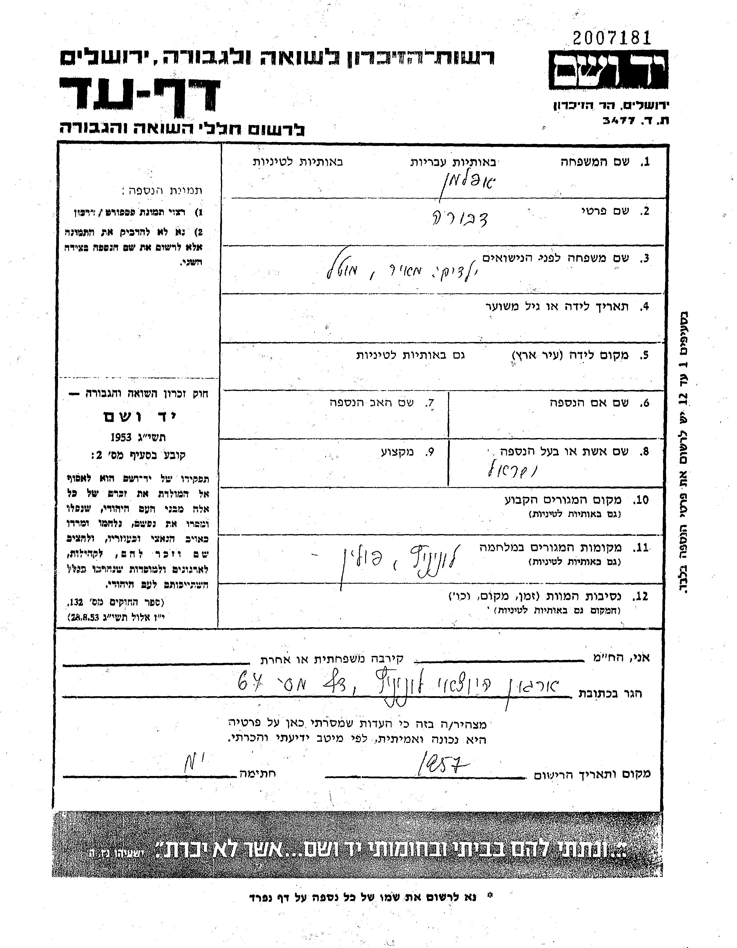 Yad Vashem - Pages of Testimony Names Memorial Collection