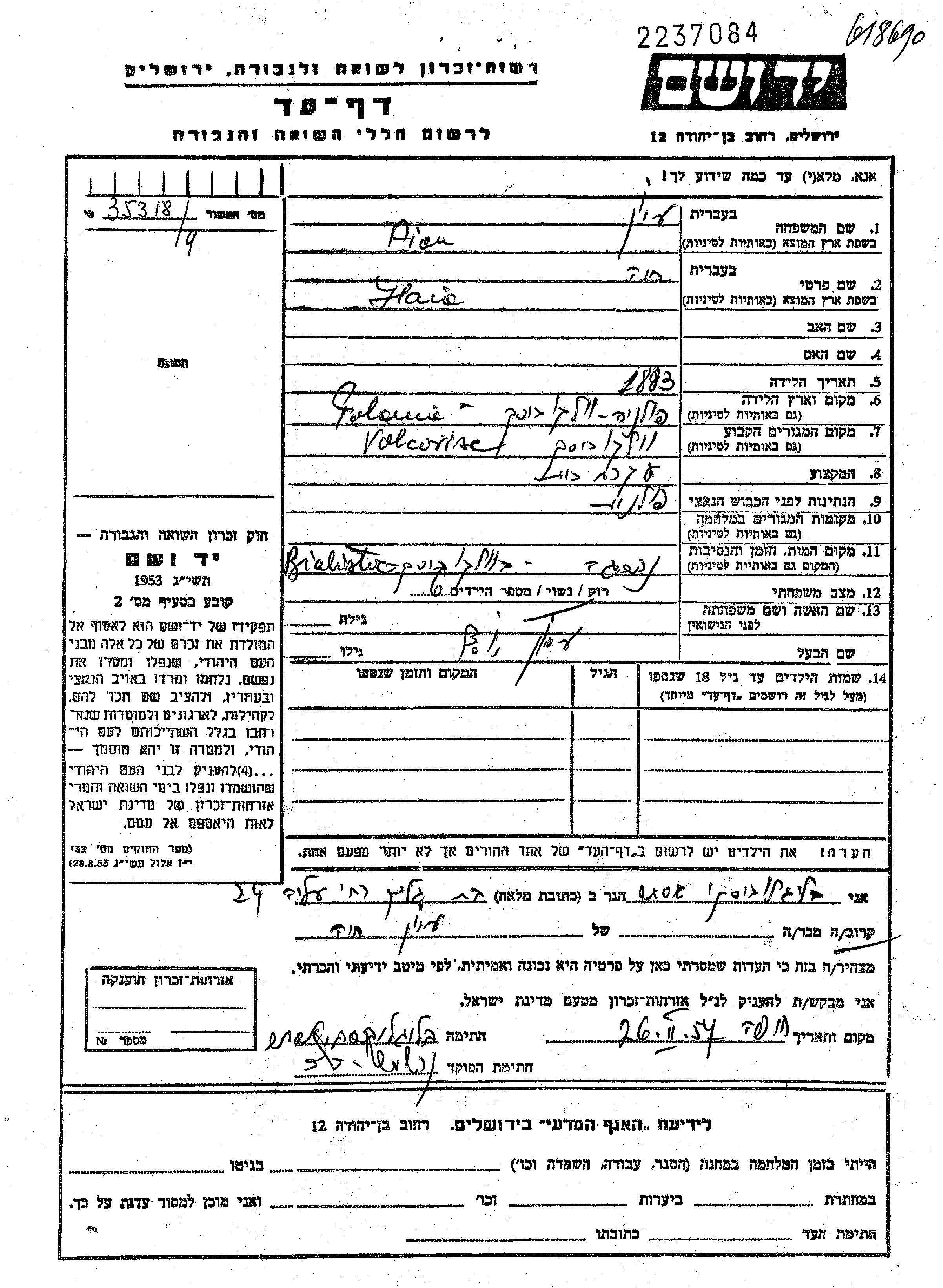 Yad Vashem - Pages of Testimony Names Memorial Collection