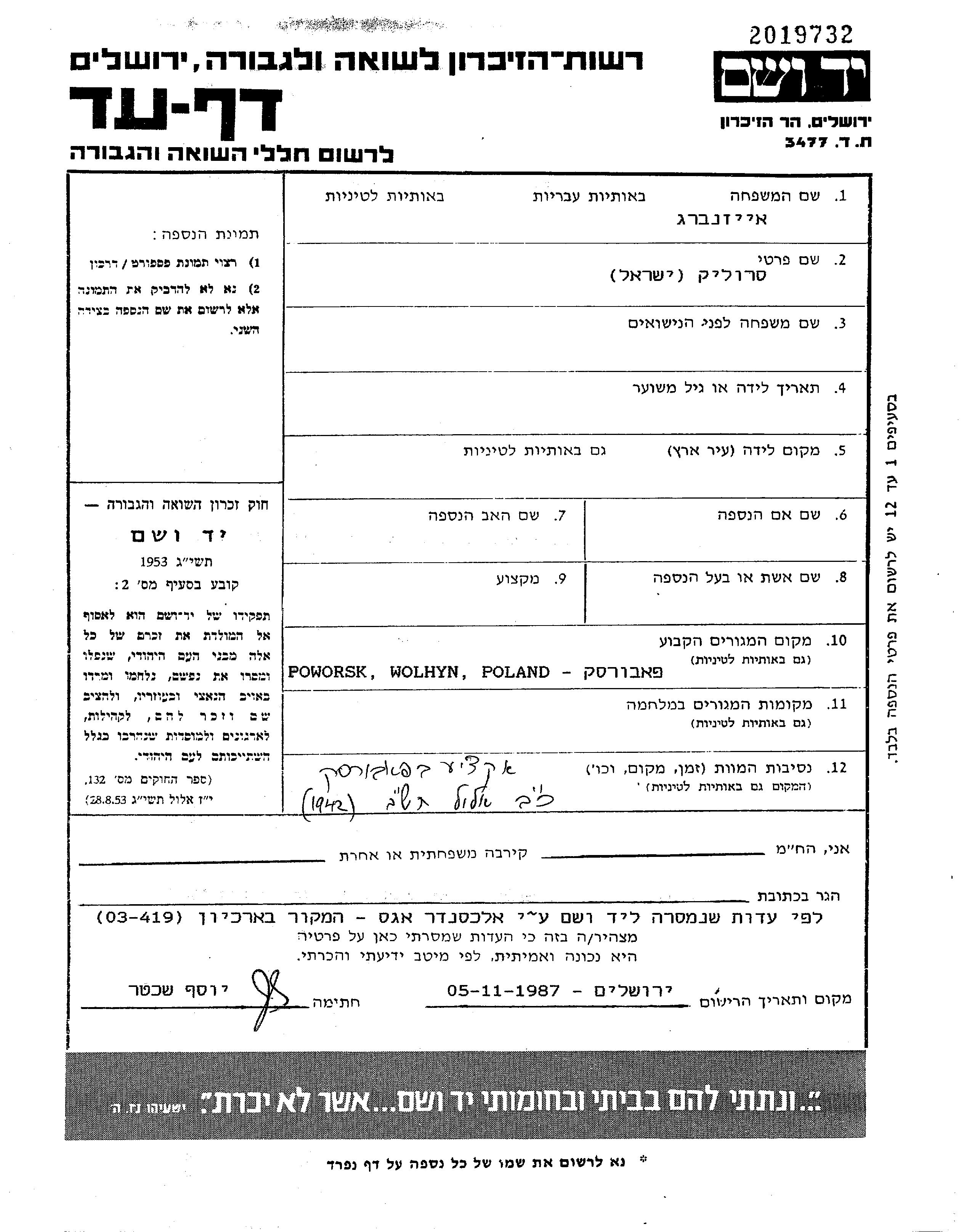 Yad Vashem - Pages of Testimony Names Memorial Collection