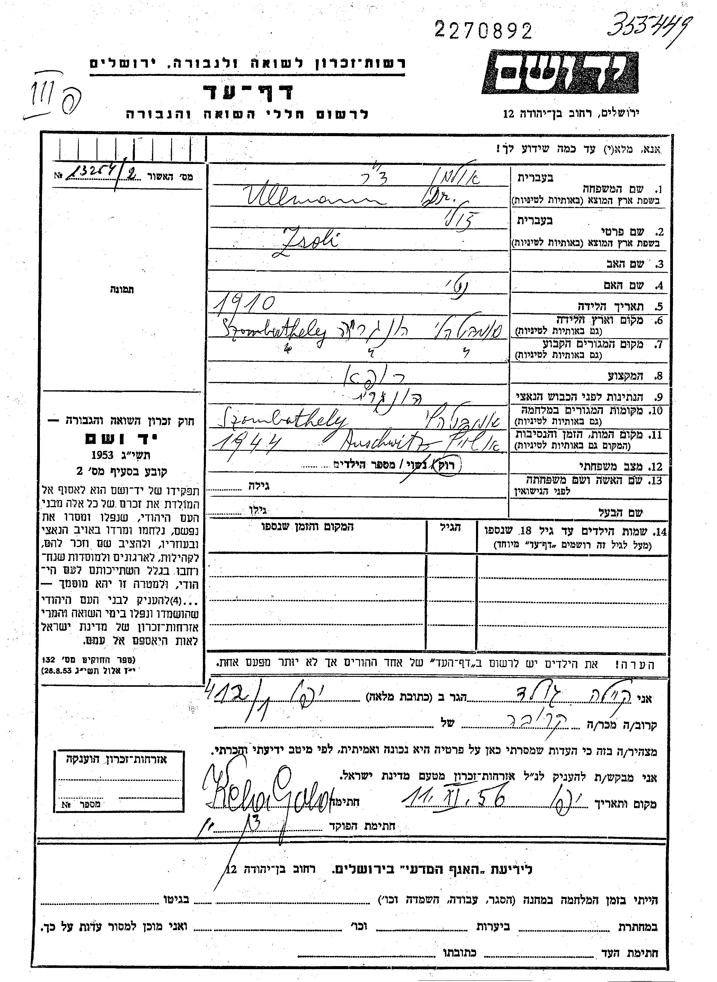 Yad Vashem - Pages of Testimony Names Memorial Collection