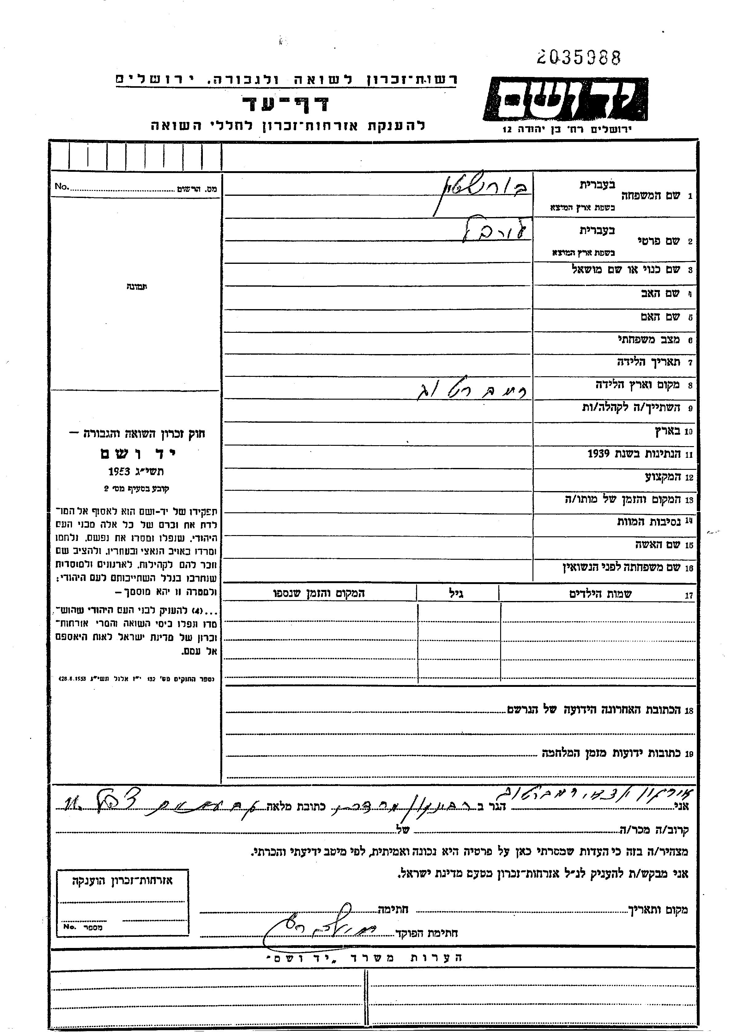 Yad Vashem - Pages of Testimony Names Memorial Collection