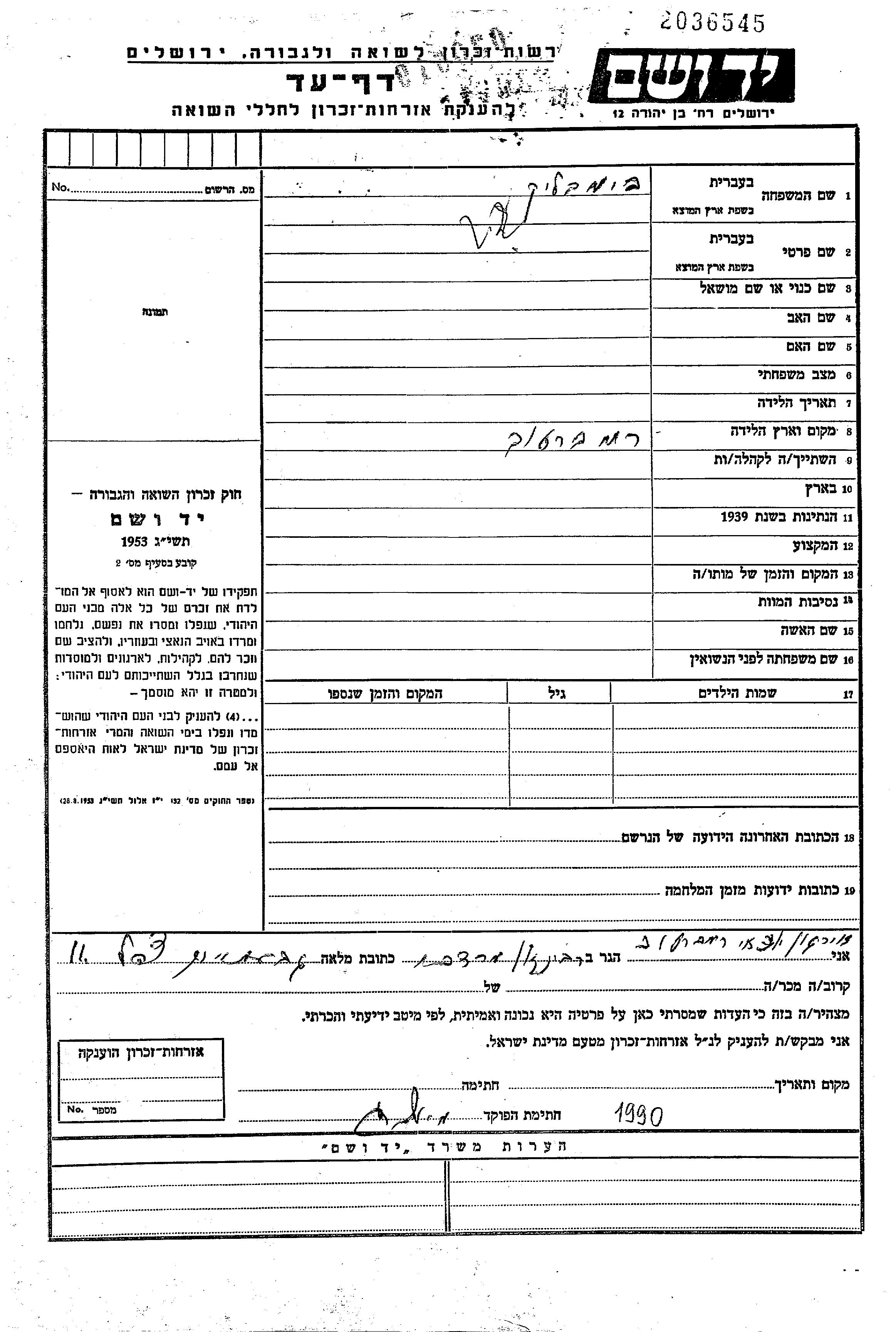 Yad Vashem - Pages of Testimony Names Memorial Collection