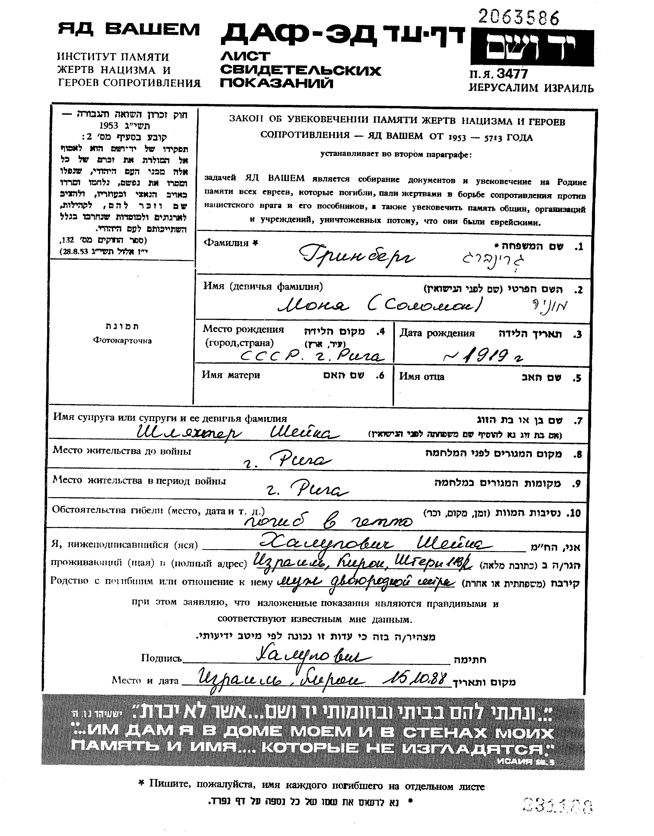 Monia Grinberg was born in Riga, Latvia, 1919. He was married to Sheina. Prior to WWII he lived in Riga, Latvia. During the war he was in Riga, Latvia. Monia was murdered in the Shoah. Place of death: Riga, Latvia.