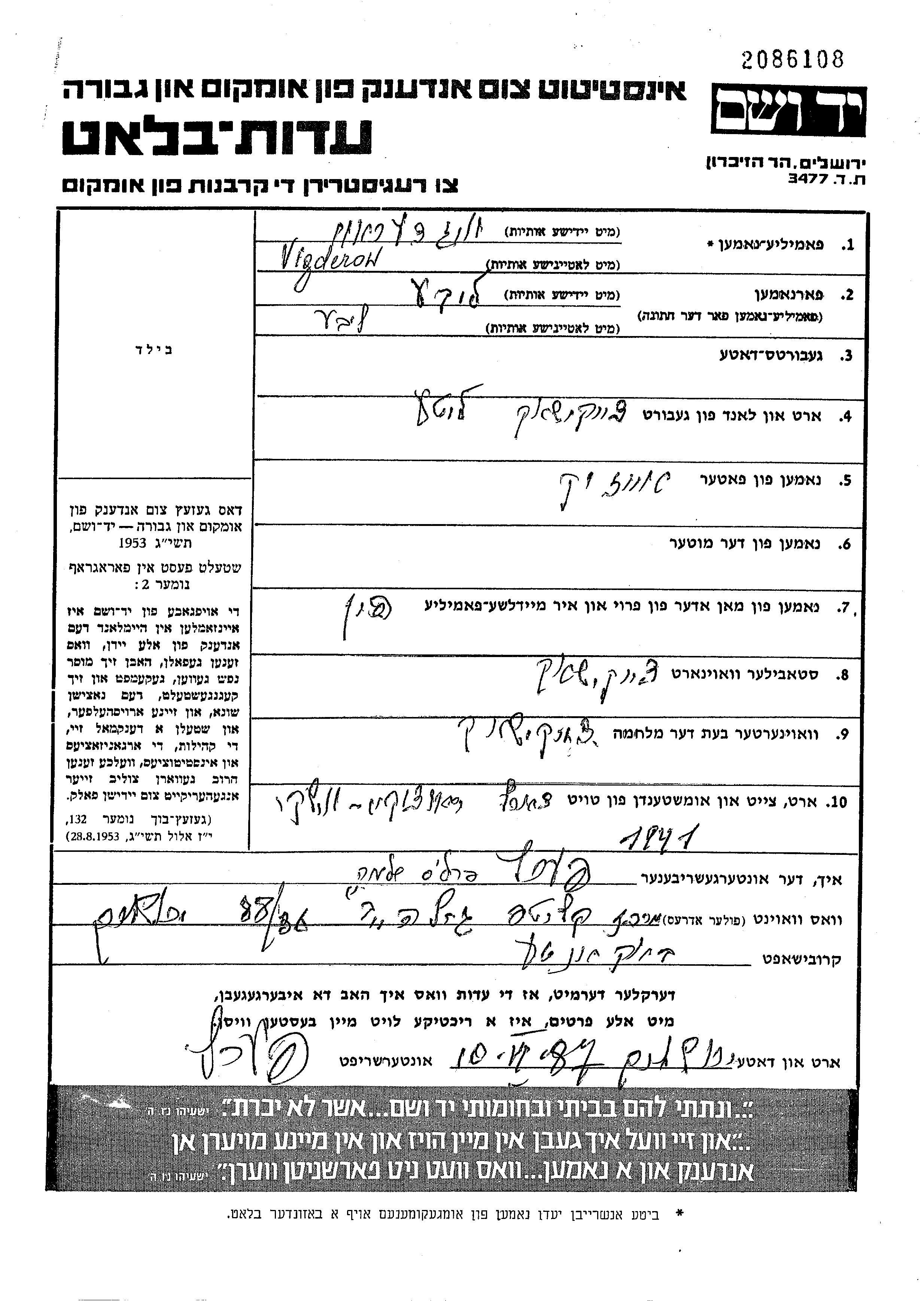 Yad Vashem - Pages of Testimony Names Memorial Collection