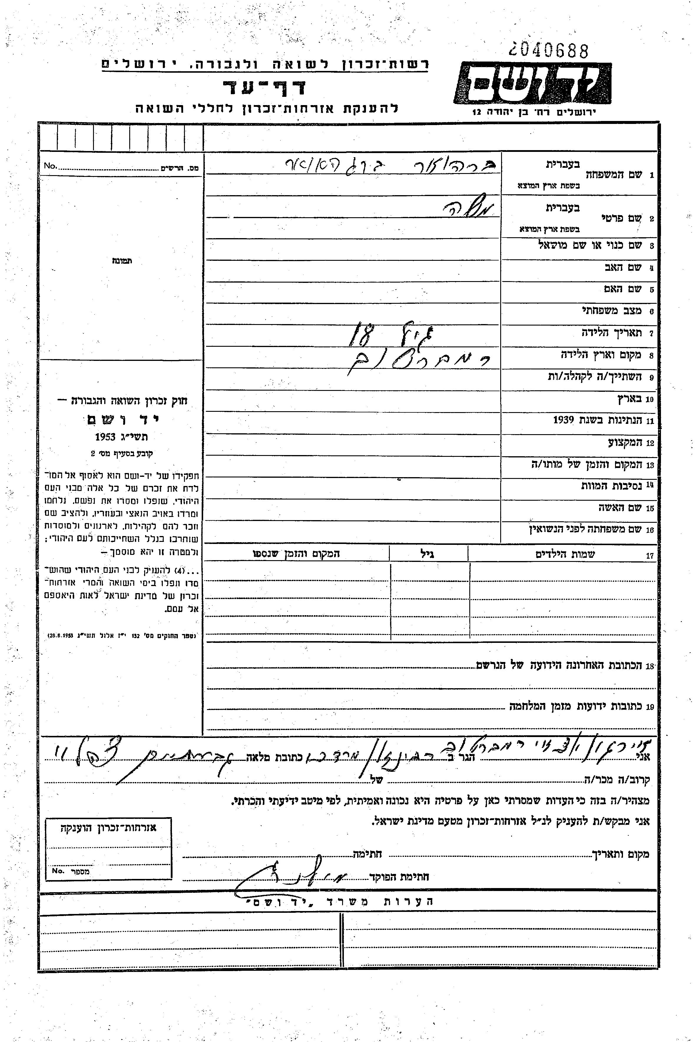 Yad Vashem - Pages of Testimony Names Memorial Collection