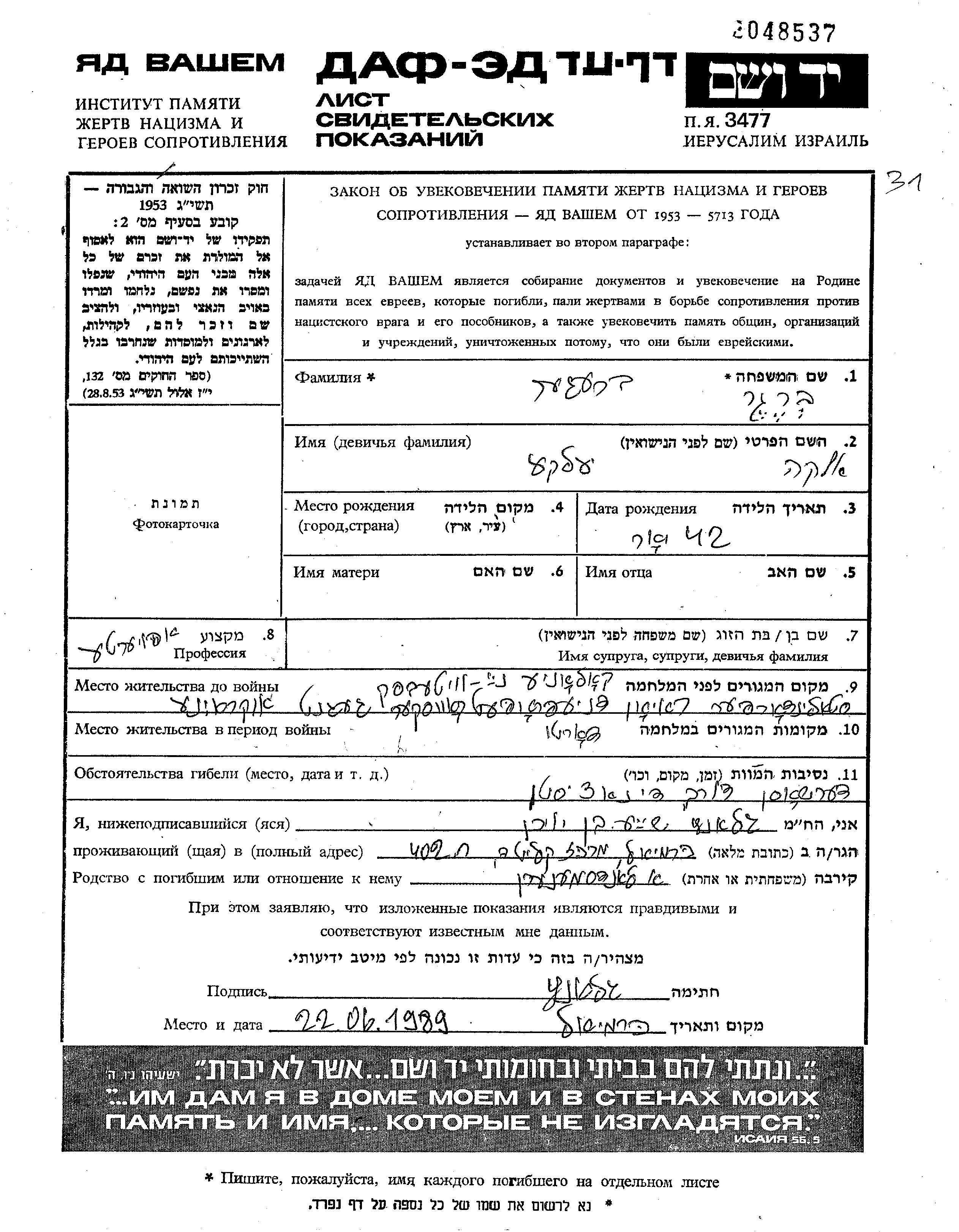 Search by name of Prewar permanent residence, Town, Village, District, Region or Country.