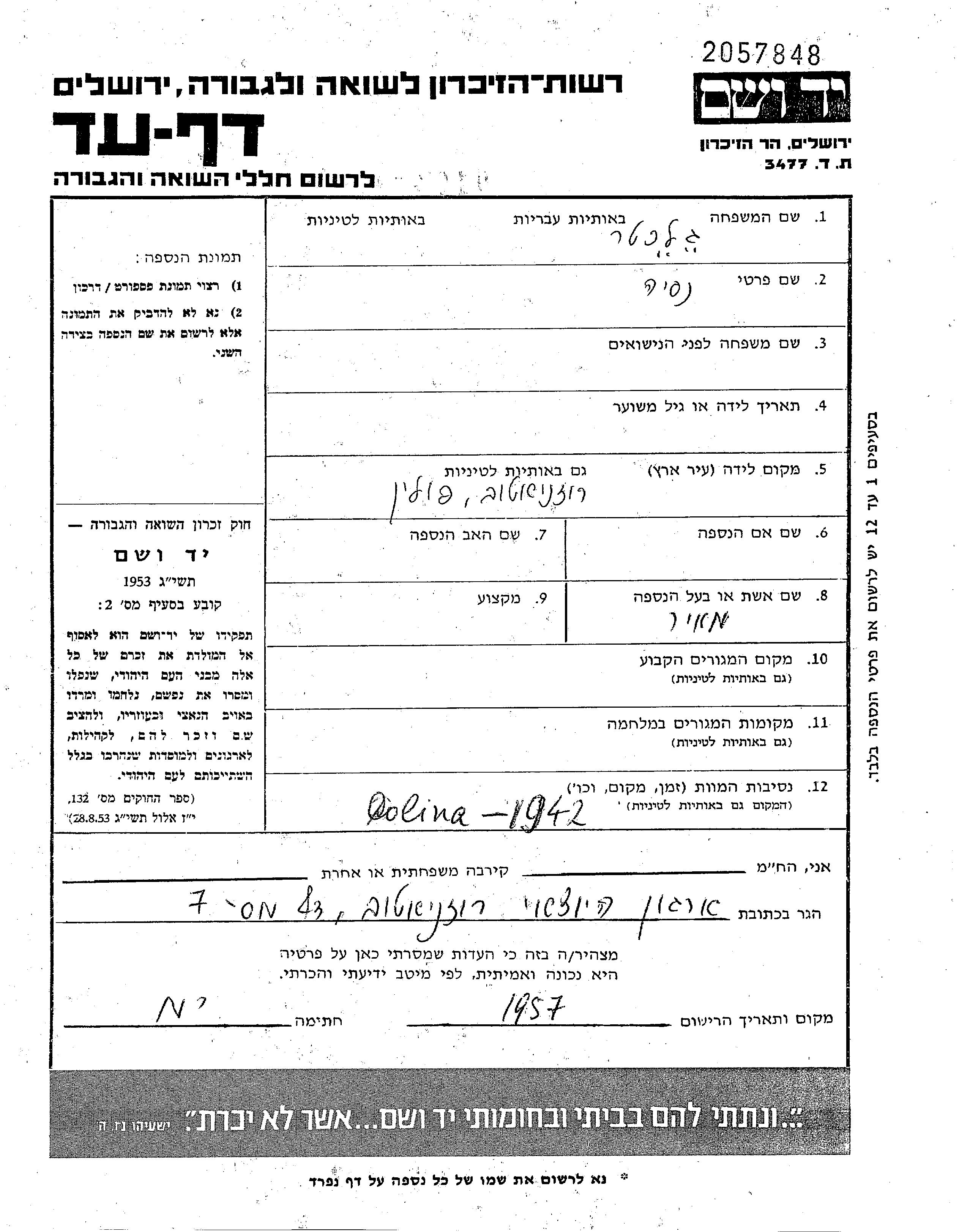 Yad Vashem - Pages of Testimony Names Memorial Collection
