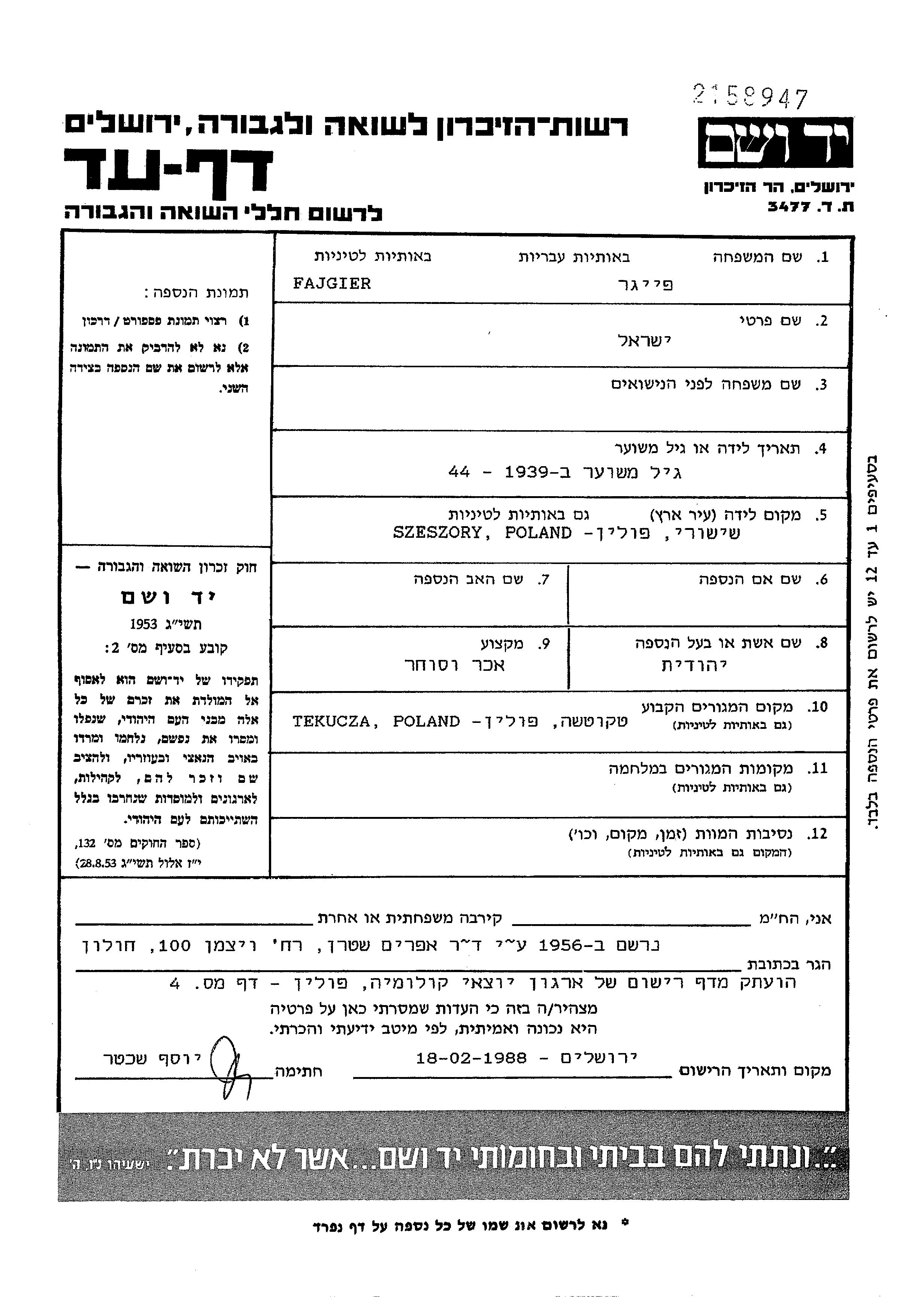 Search by last name of the submitter of the Page of Testimony, including diminutives or nicknames