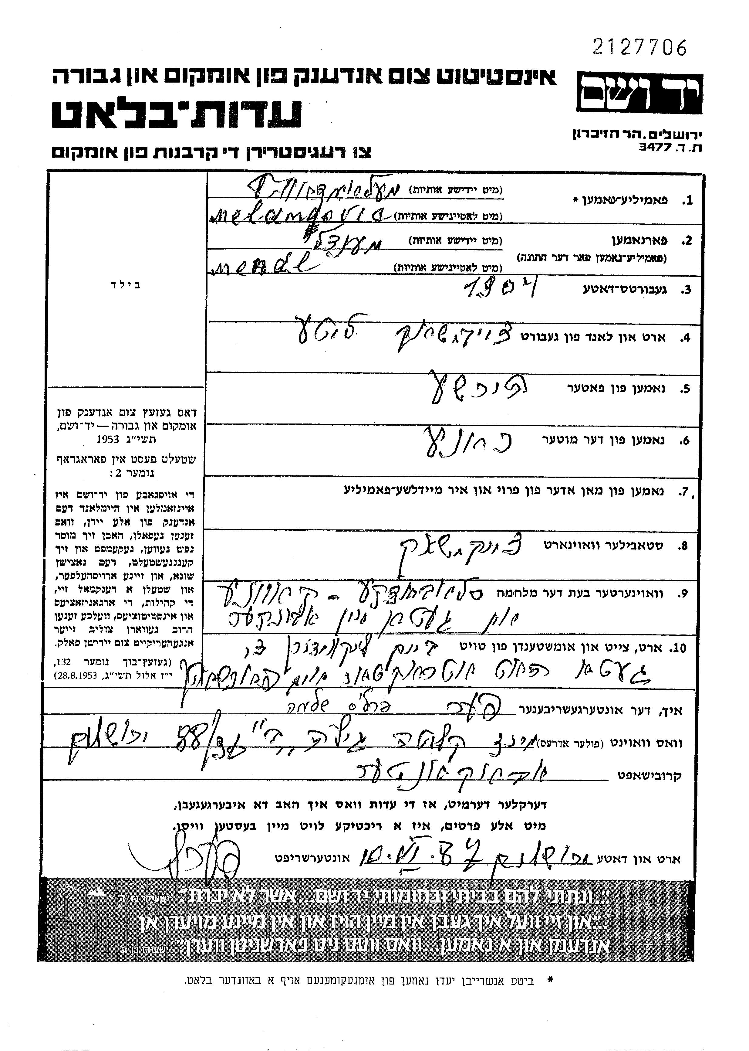 Yad Vashem - Pages of Testimony Names Memorial Collection
