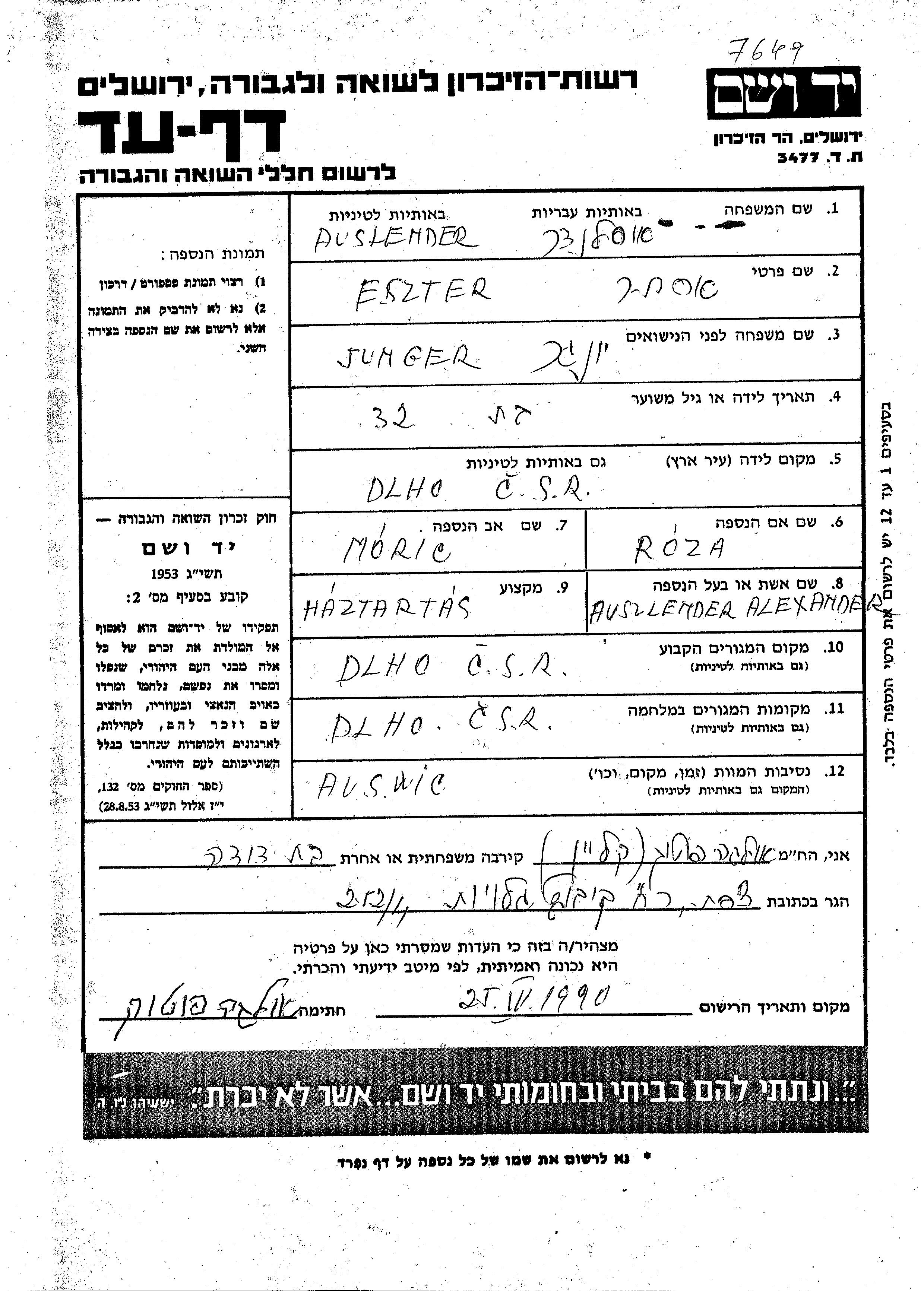 Auslender Eszter Dlha, Czechoslovakia Page of Testimony