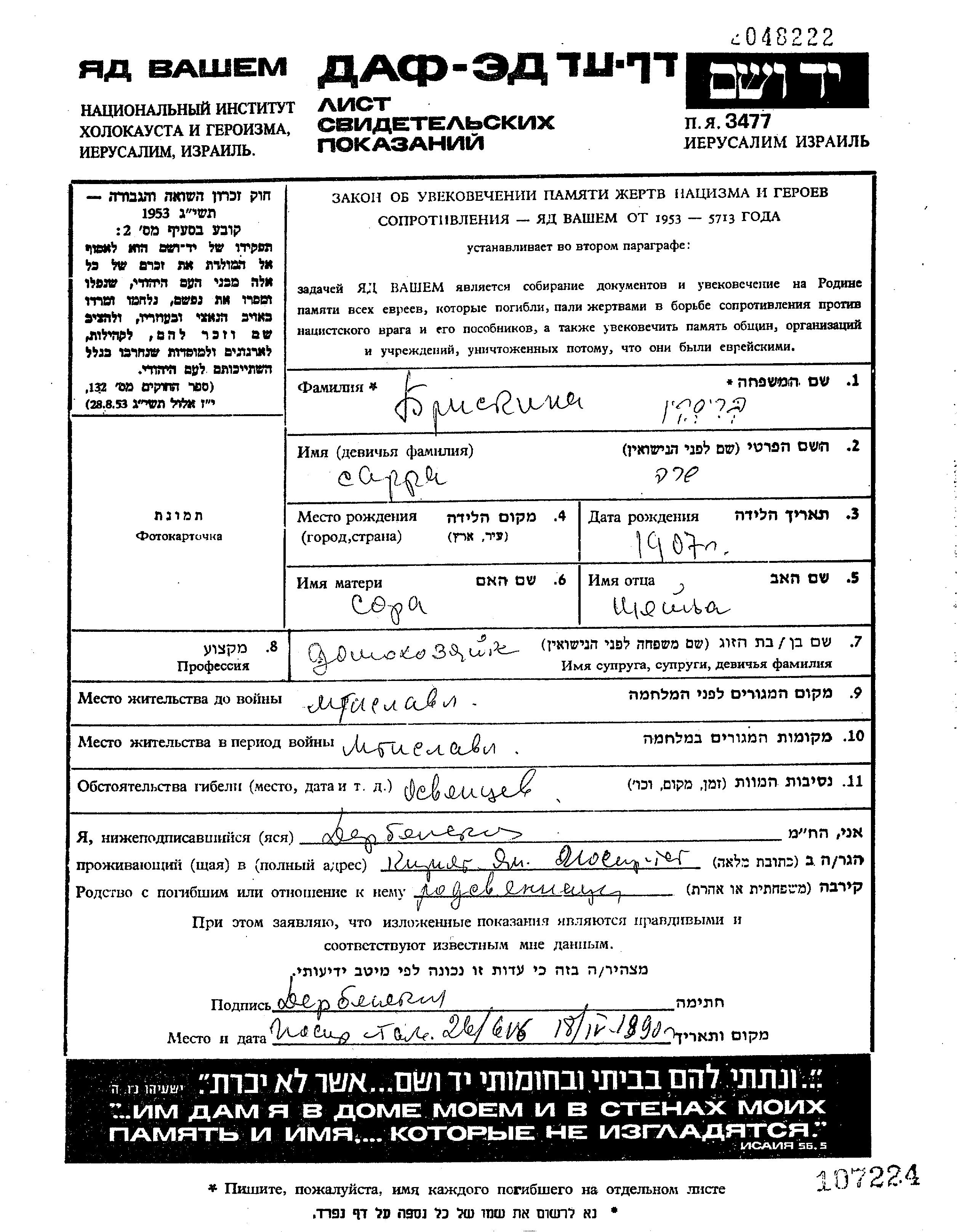 Briskin Sara 1907 Mstislavl, Belorussia (USSR) Page of Testimony