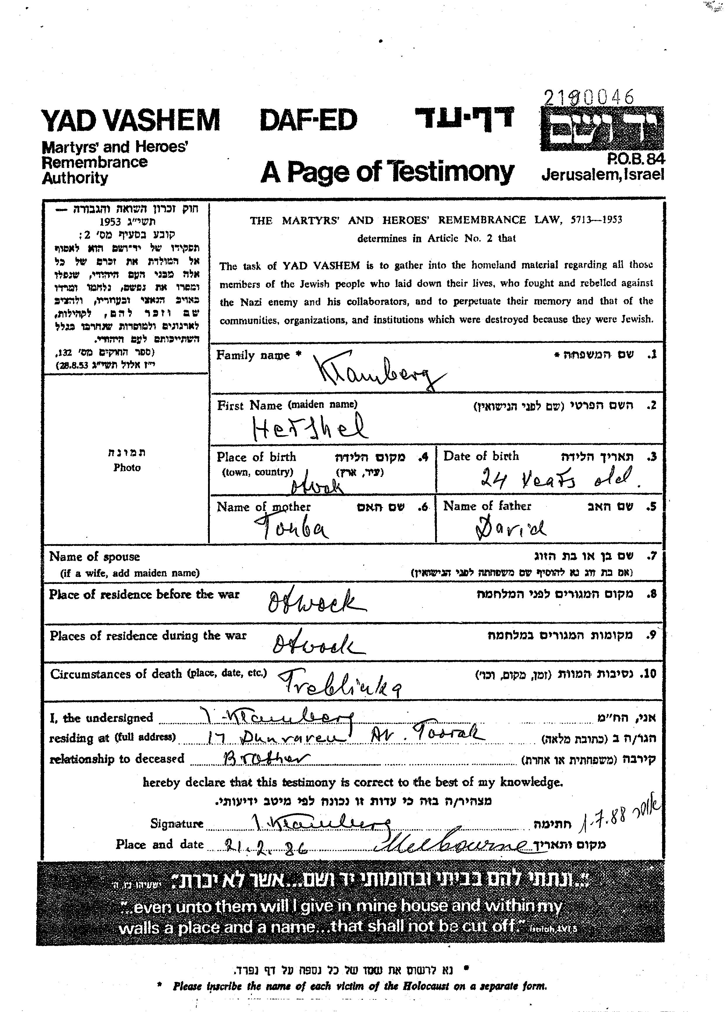 Yad Vashem - Pages of Testimony Names Memorial Collection