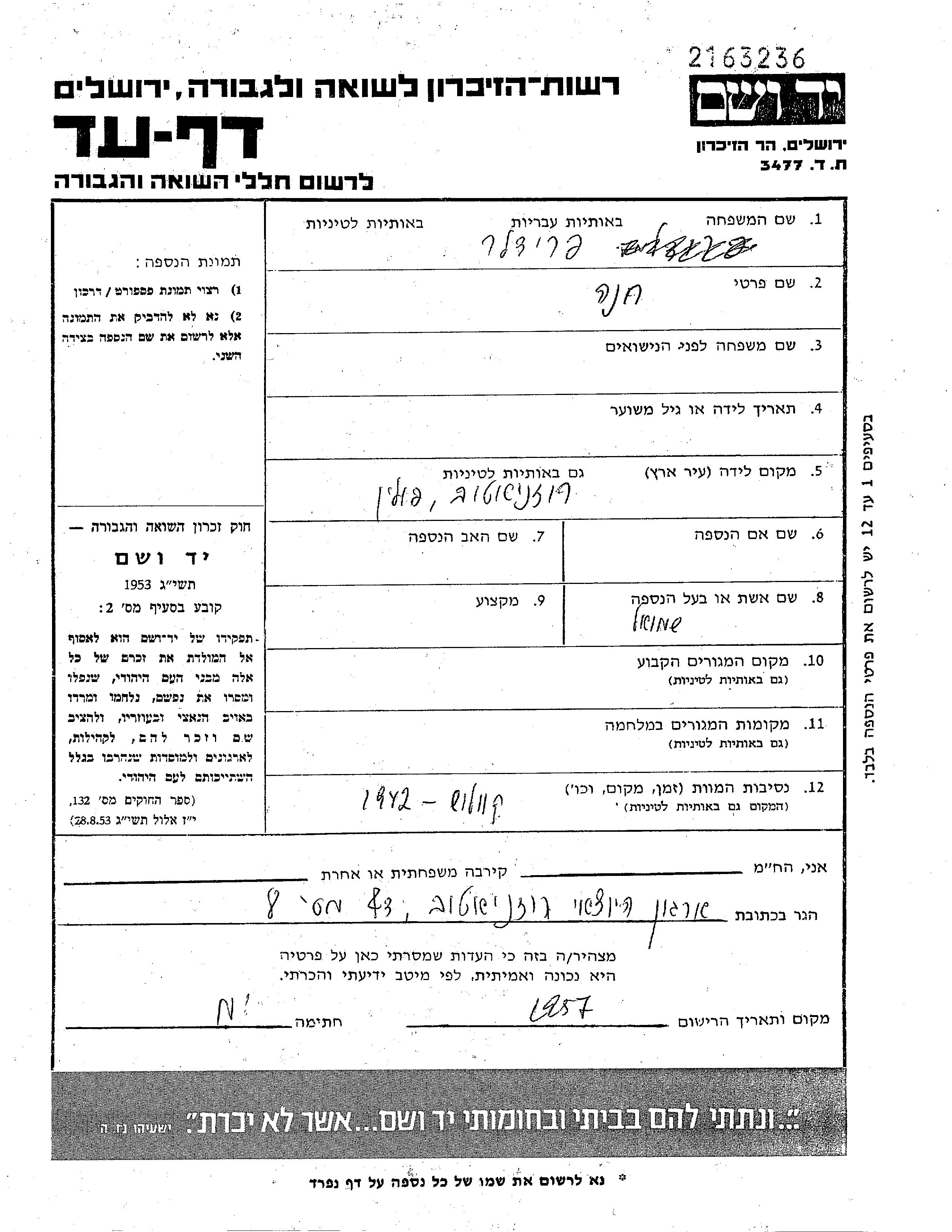 Yad Vashem - Pages of Testimony Names Memorial Collection