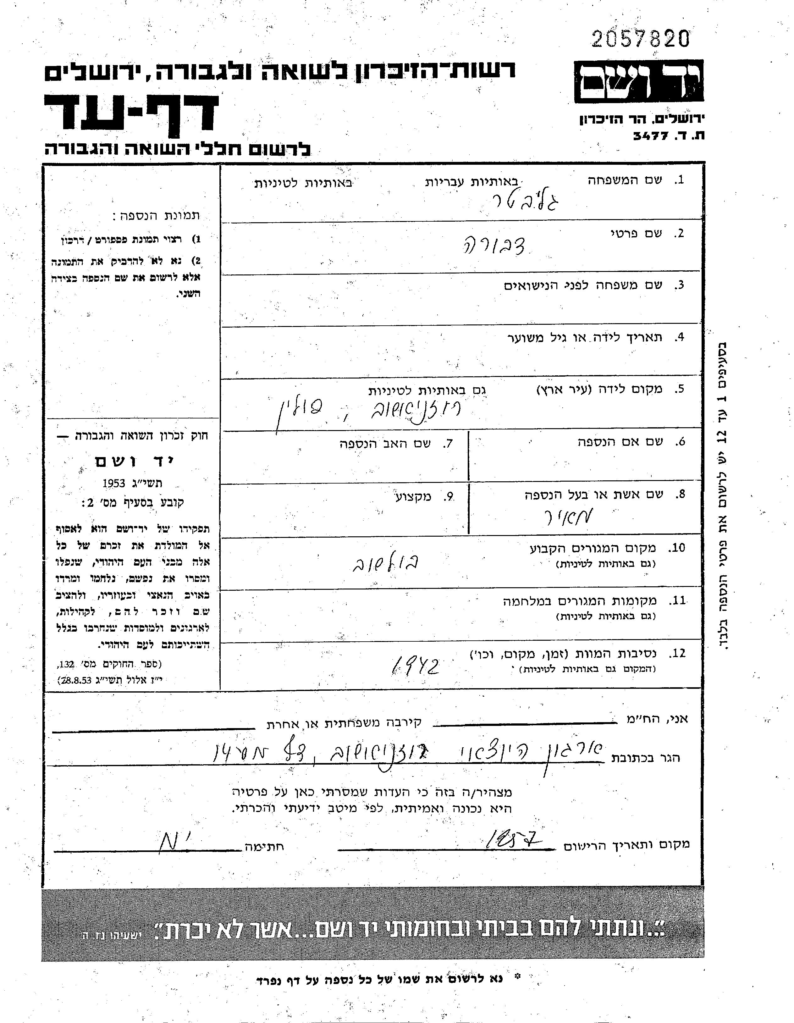 Search by last name of the submitter of the Page of Testimony, including diminutives or nicknames