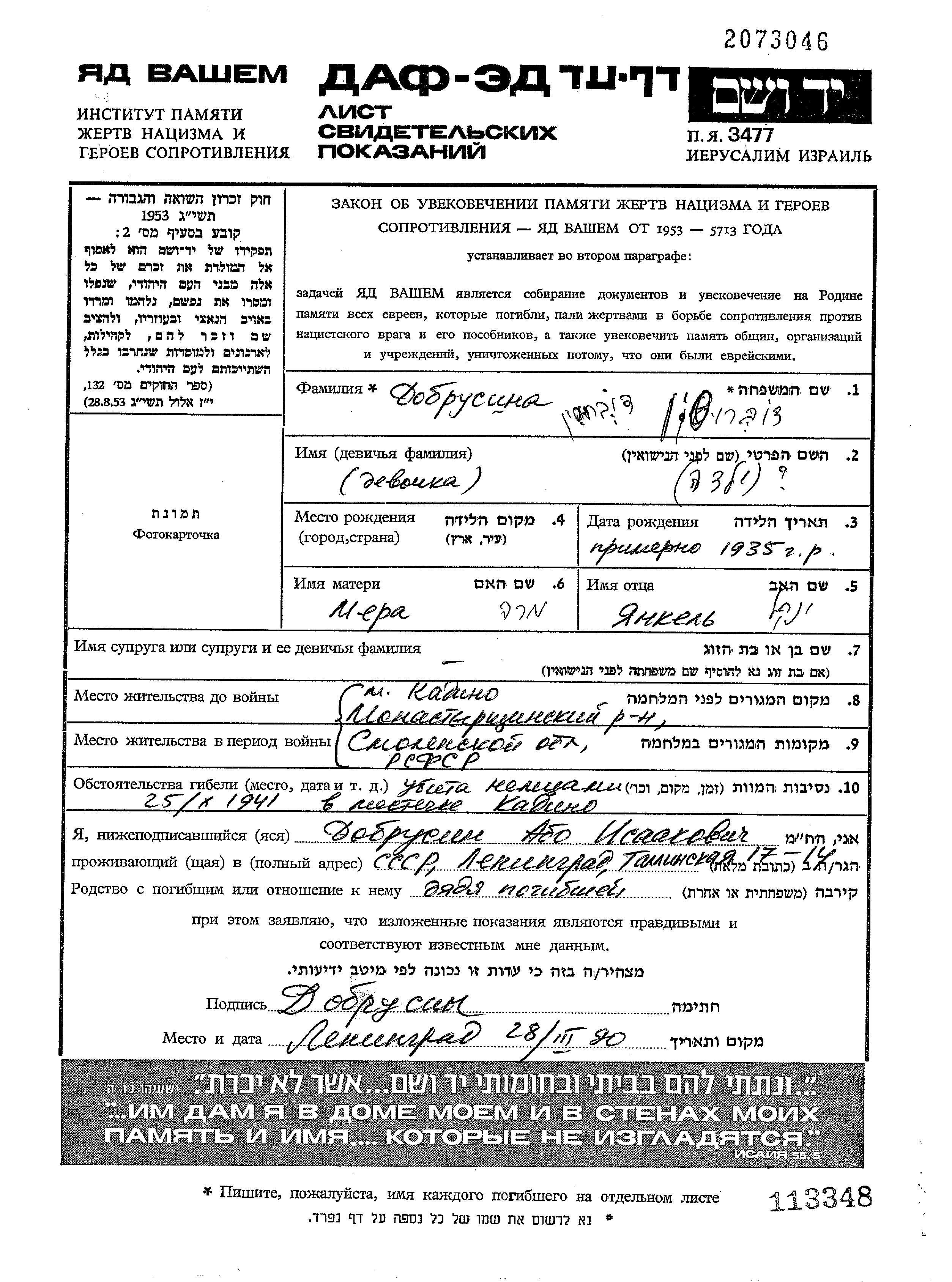 Dobrusin First name unknown Kadino, Russia (USSR) Page of Testimony