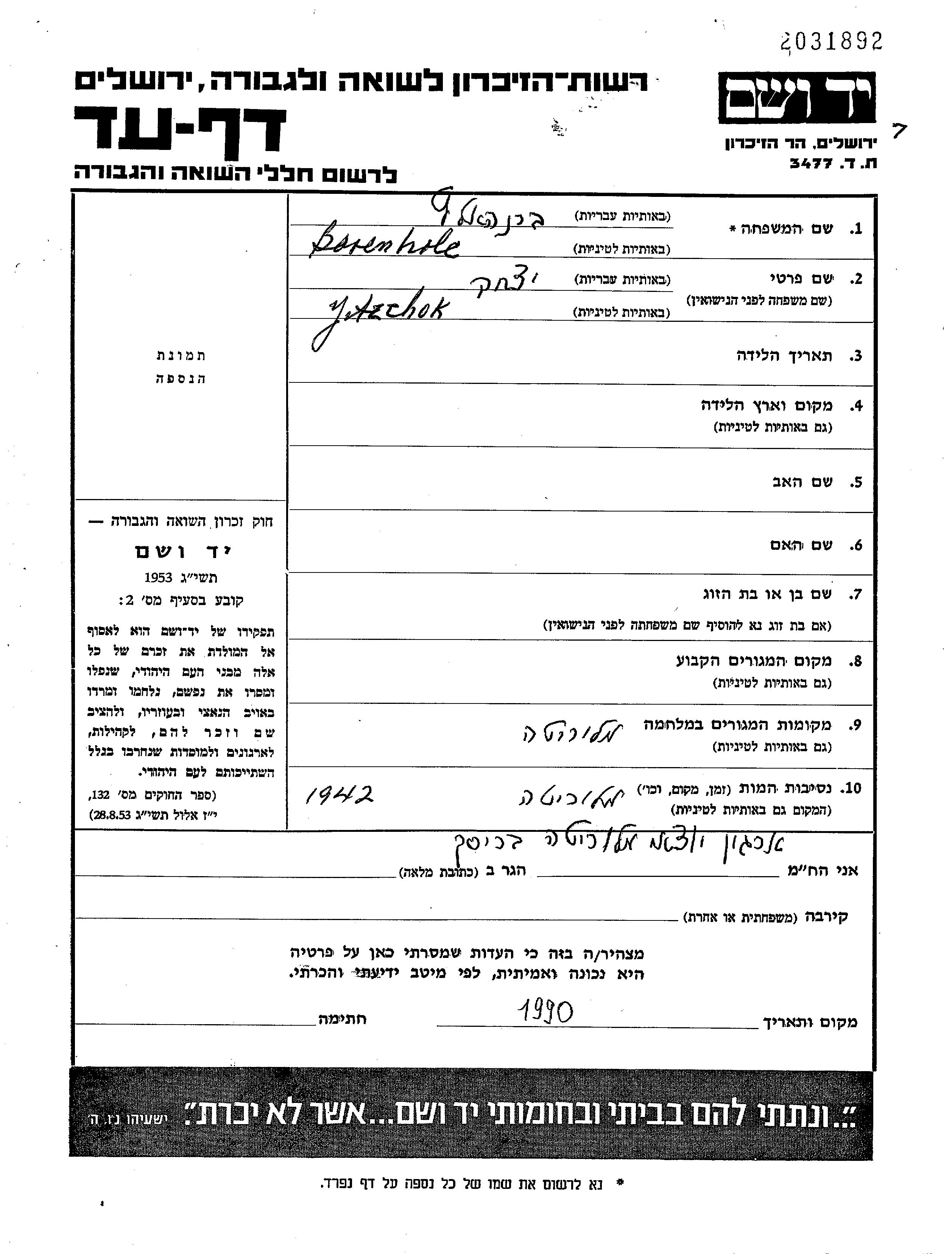 Yad Vashem - Pages of Testimony Names Memorial Collection