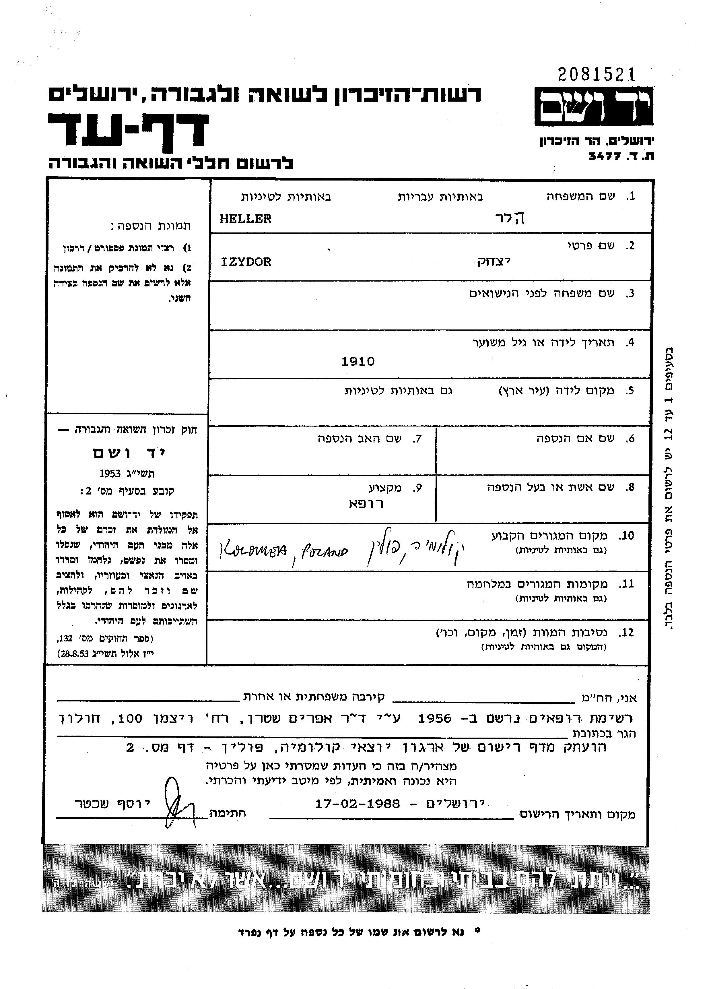 Search by last name of the submitter of the Page of Testimony, including diminutives or nicknames