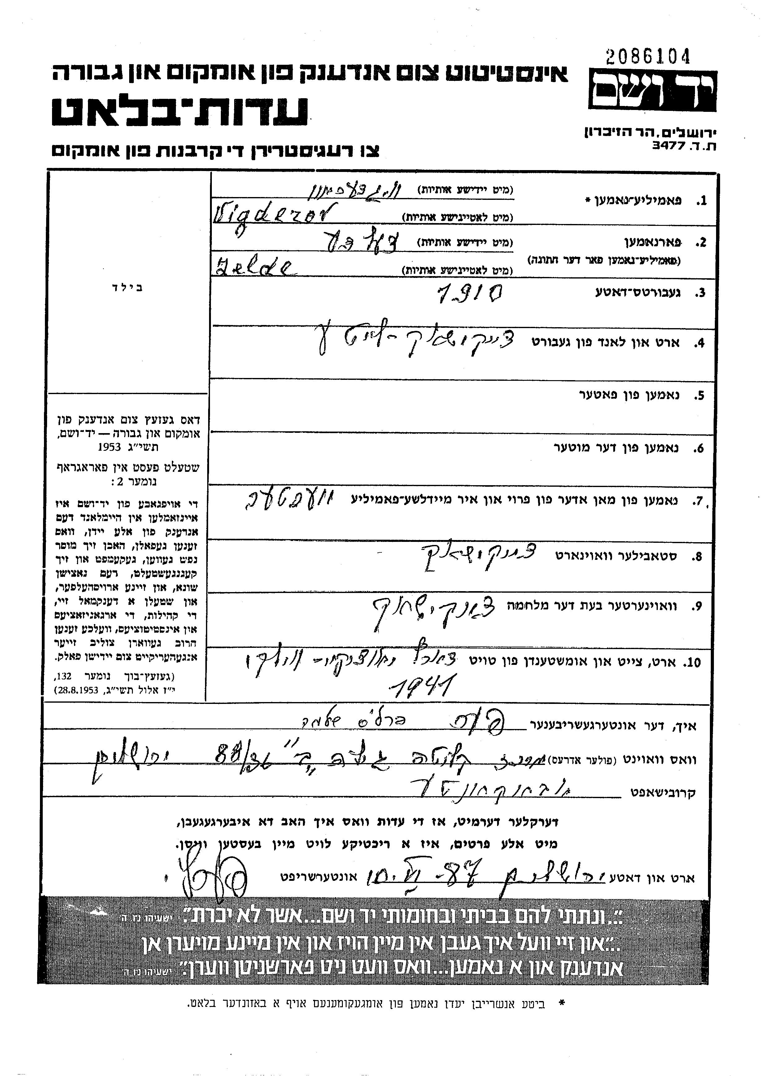 Yad Vashem - Pages of Testimony Names Memorial Collection
