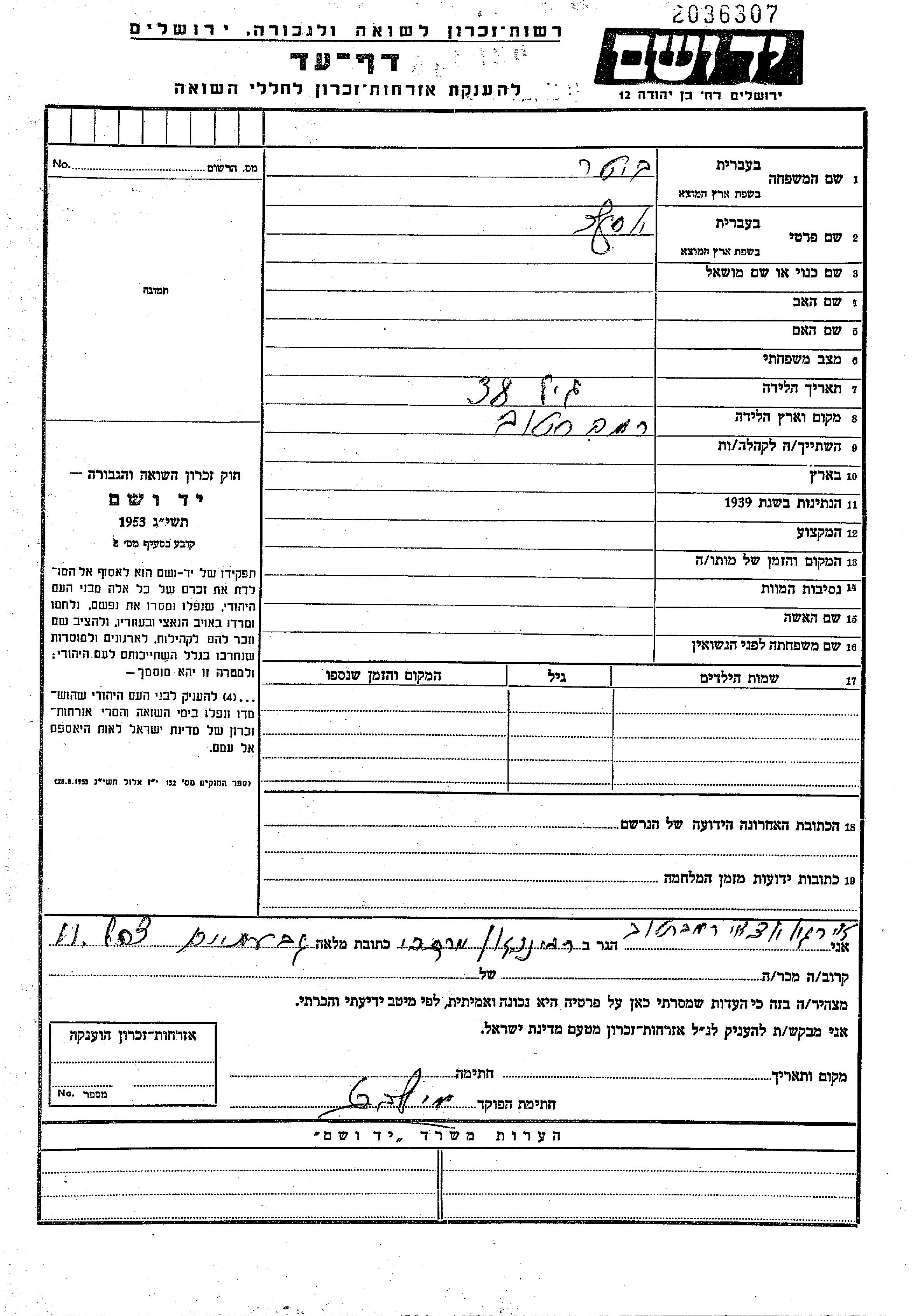 Yad Vashem - Pages of Testimony Names Memorial Collection