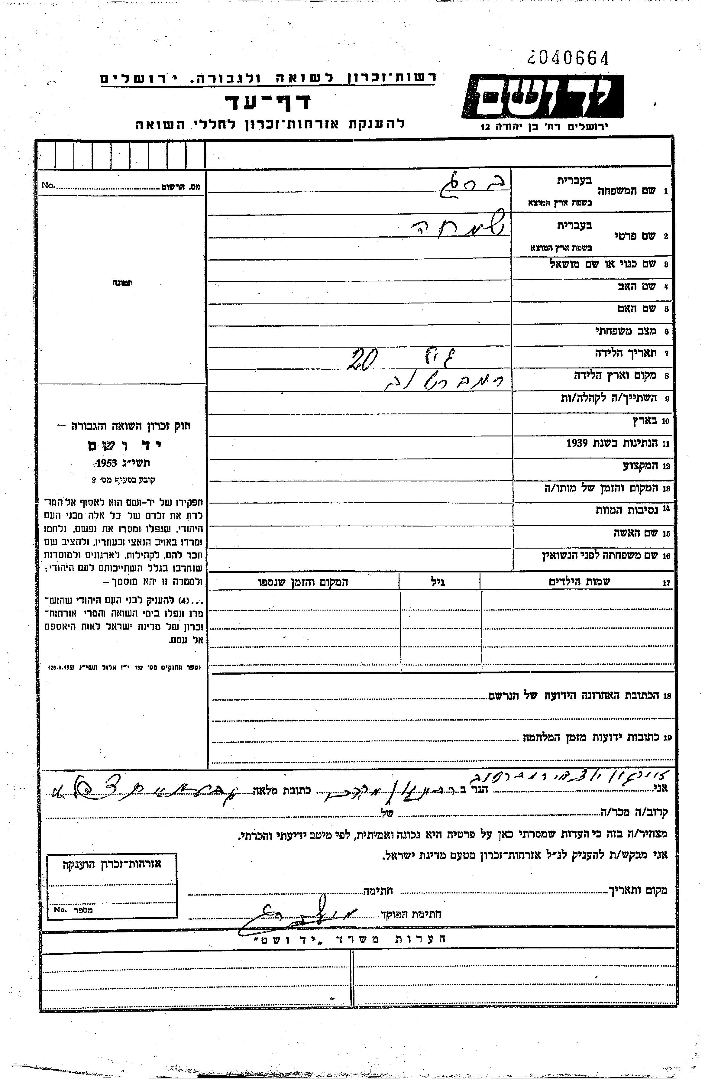 Yad Vashem - Pages of Testimony Names Memorial Collection