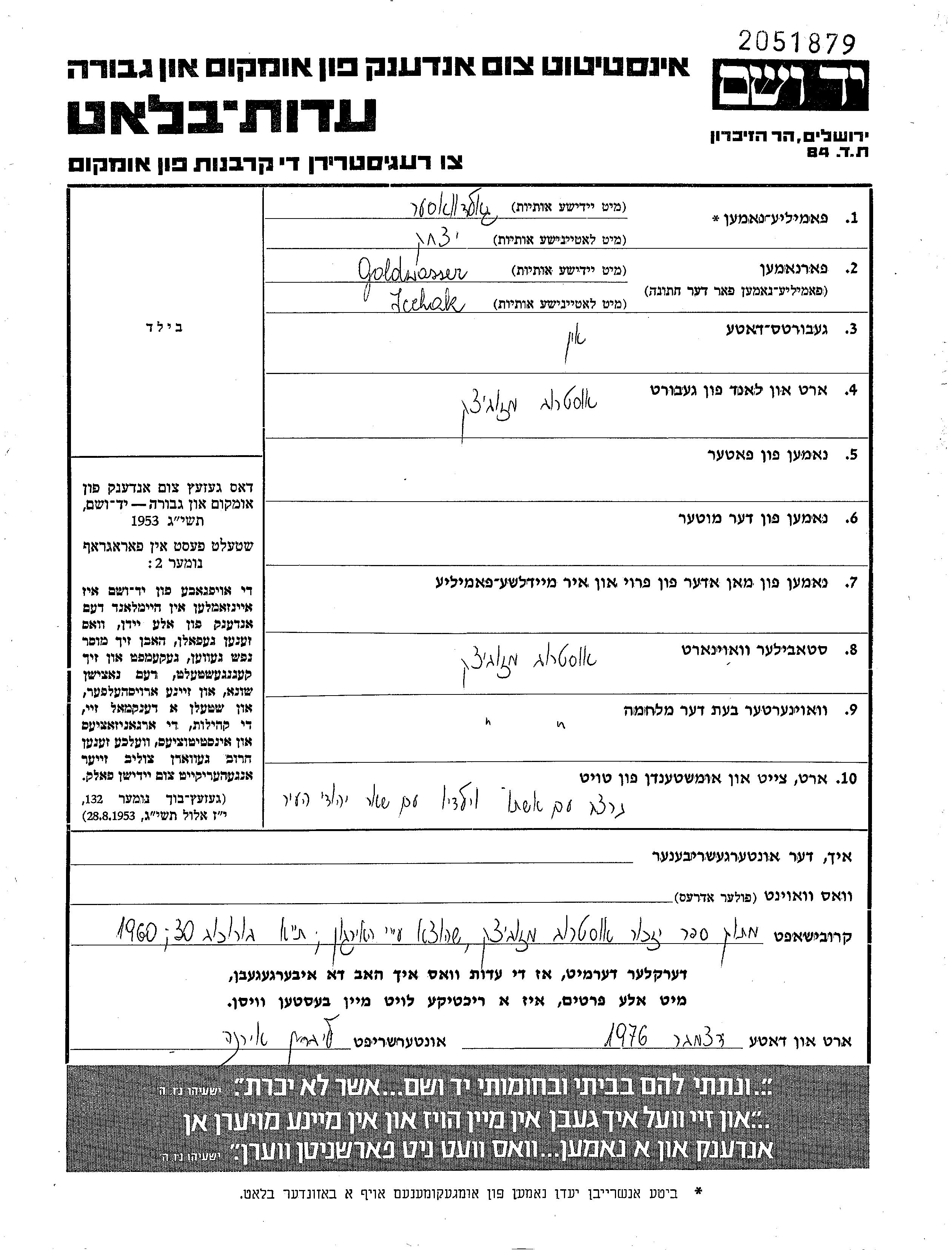 Goldwasser Icchak Ostrów Mazowiecka, Poland Page of Testimony