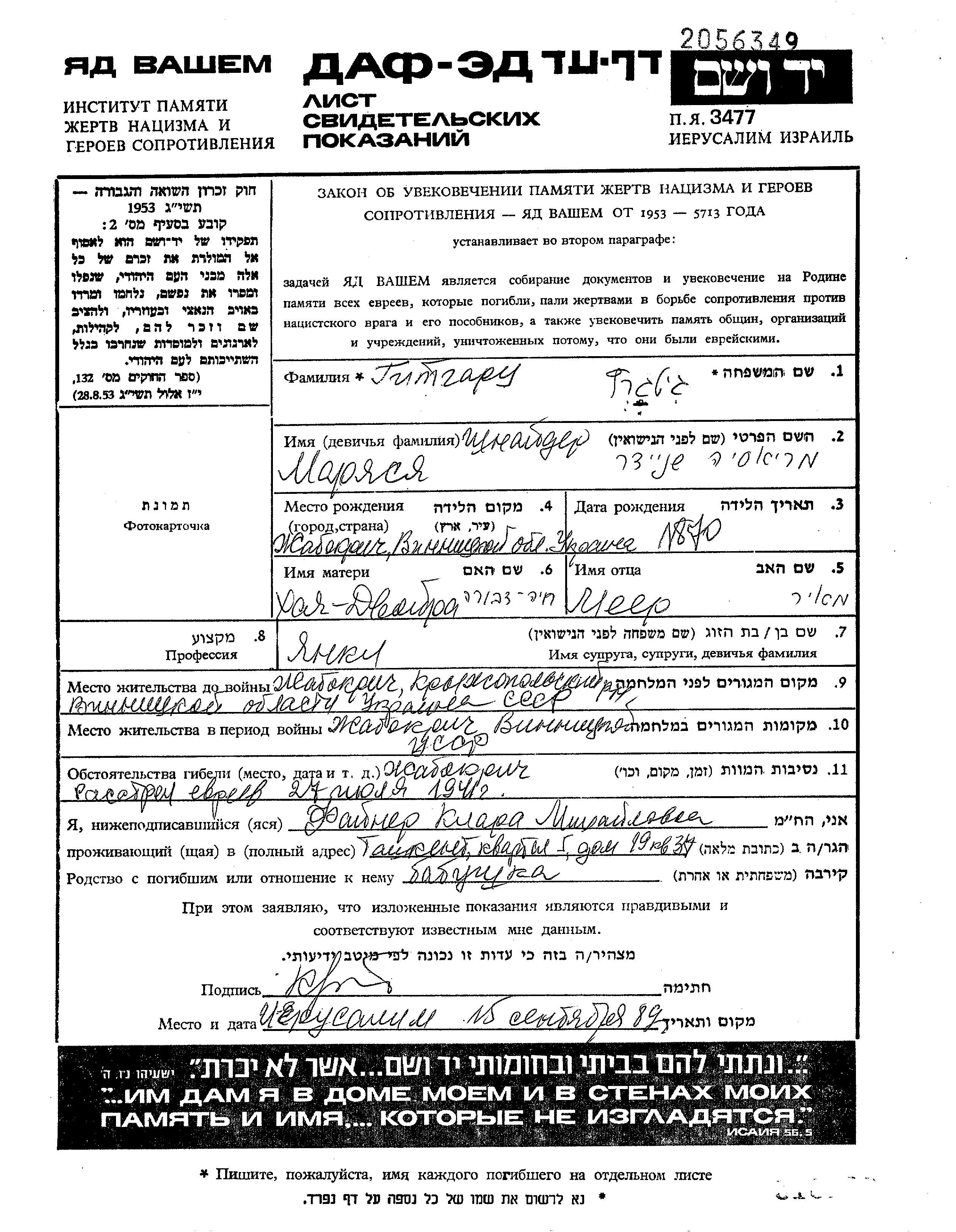 Yad Vashem - Pages of Testimony Names Memorial Collection