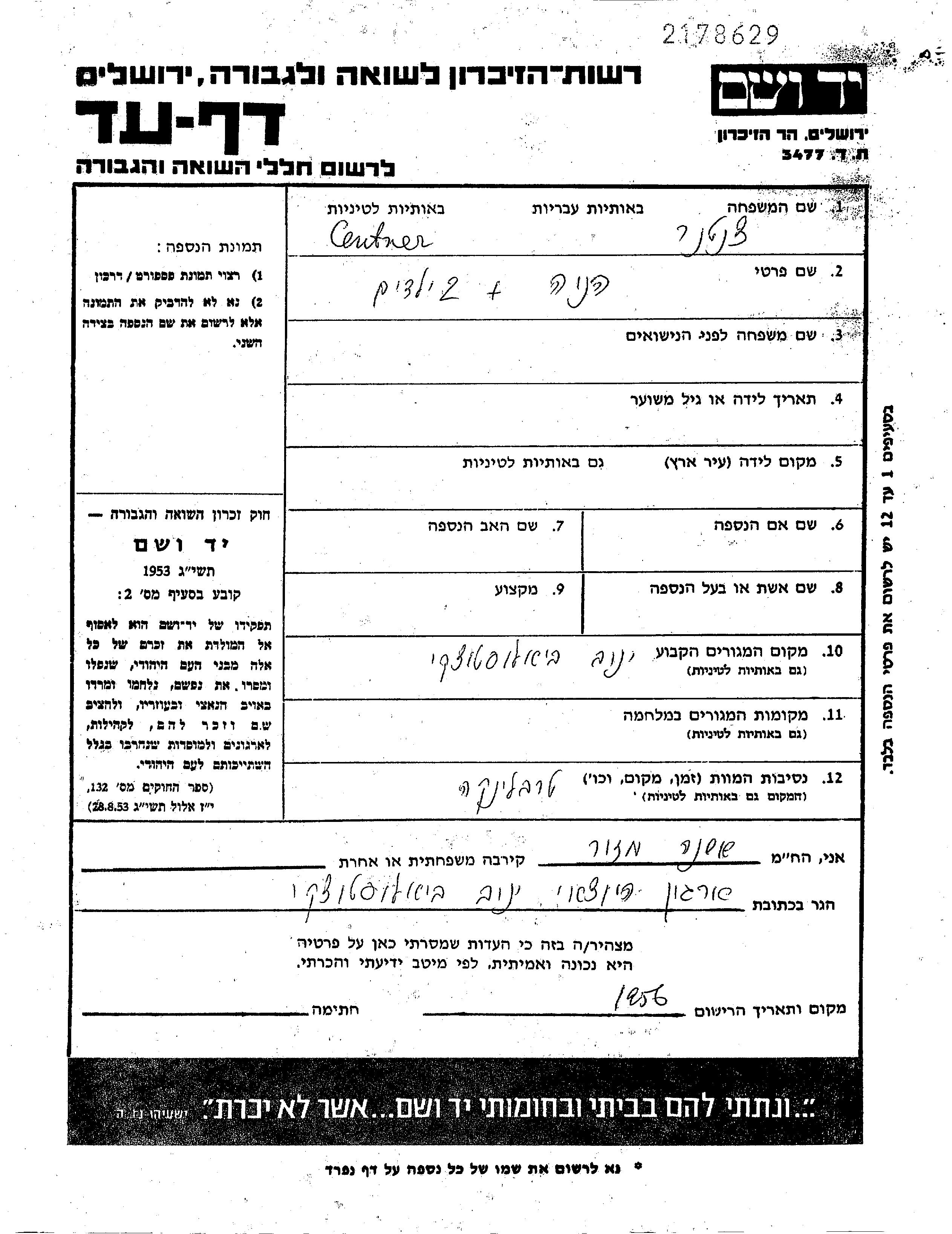 Yad Vashem - Pages of Testimony Names Memorial Collection