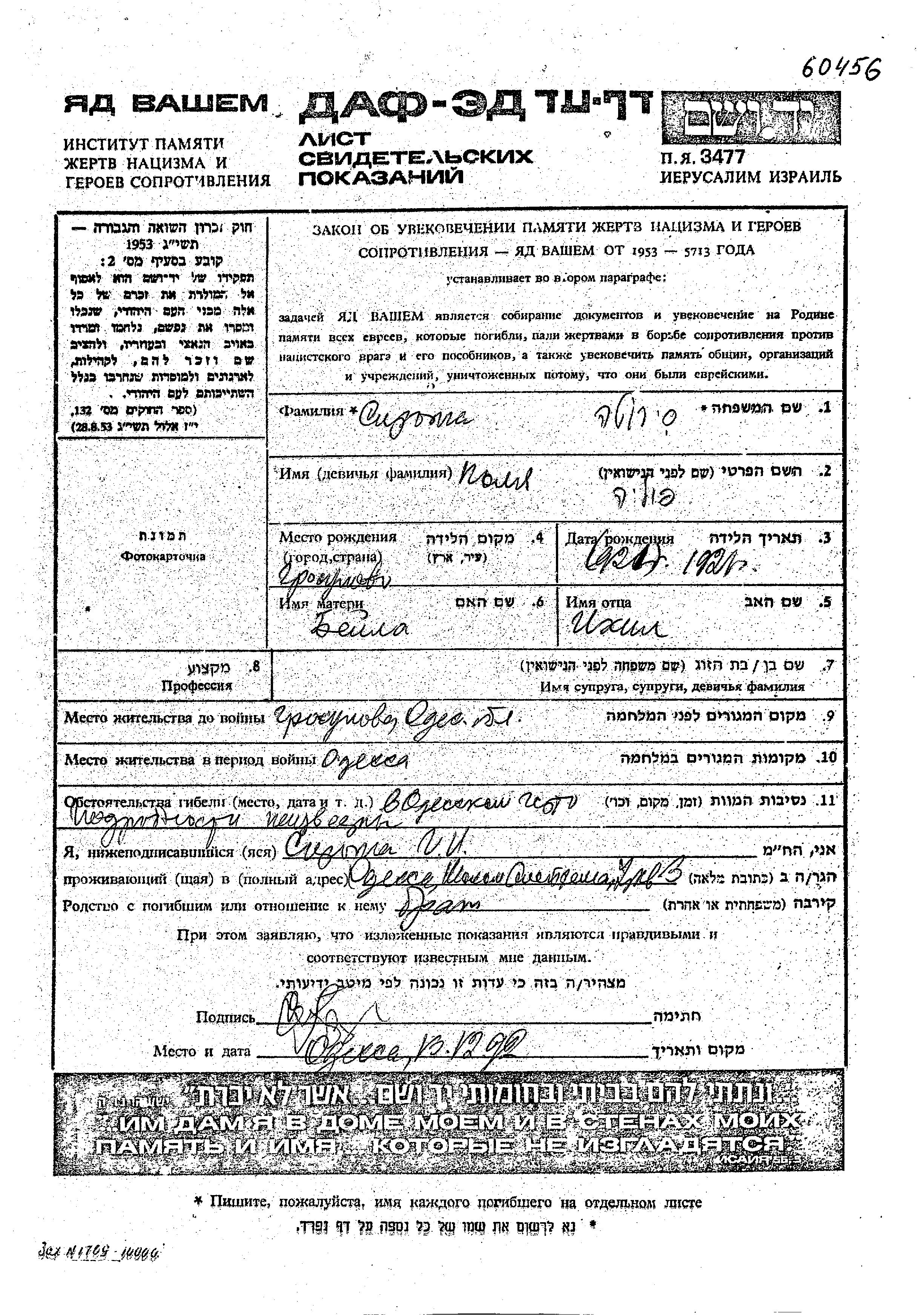 Sirota Polia 1921 Grosulovo, Ukraine (USSR) Page of Testimony