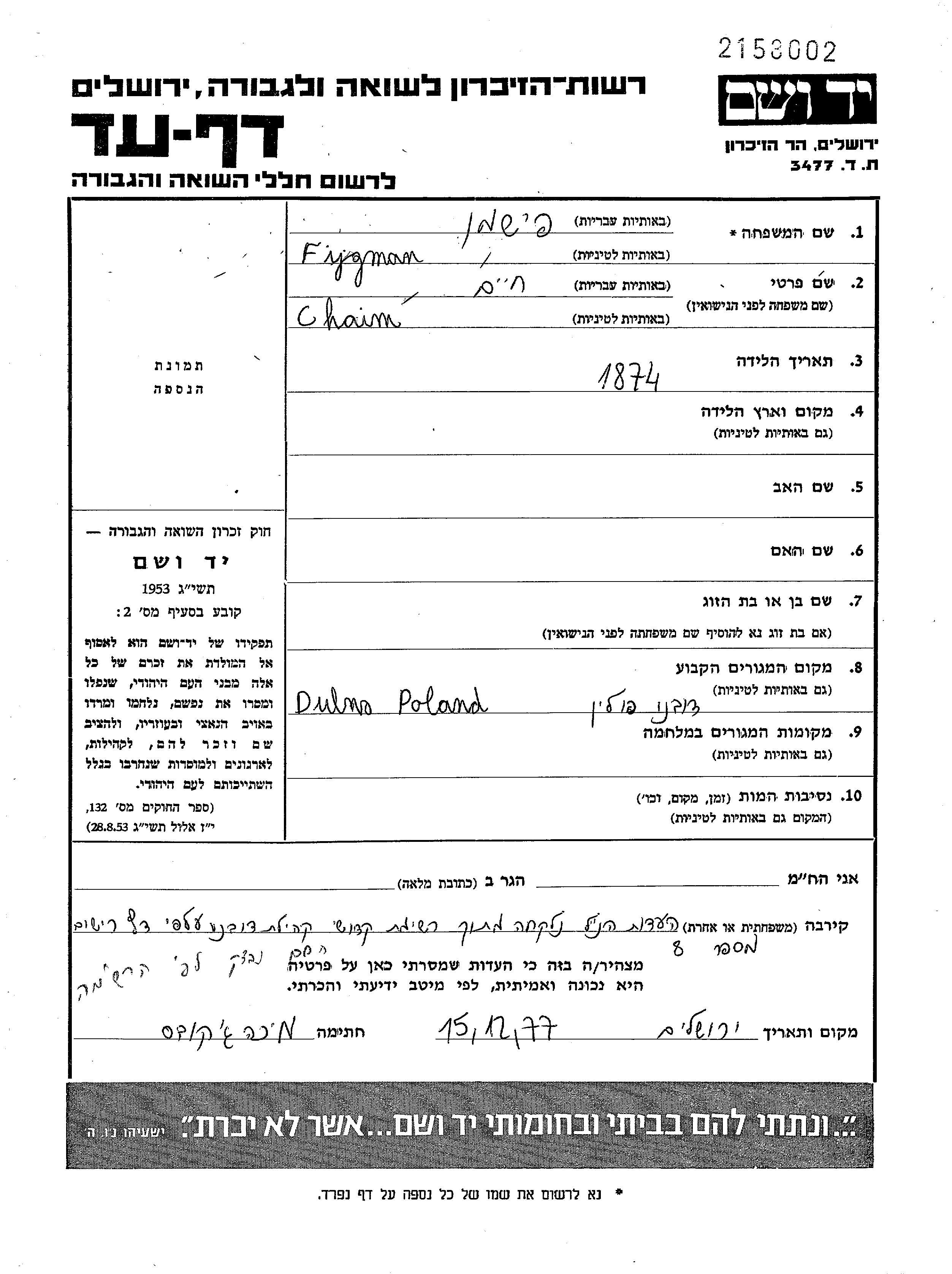 Yad Vashem - Pages of Testimony Names Memorial Collection