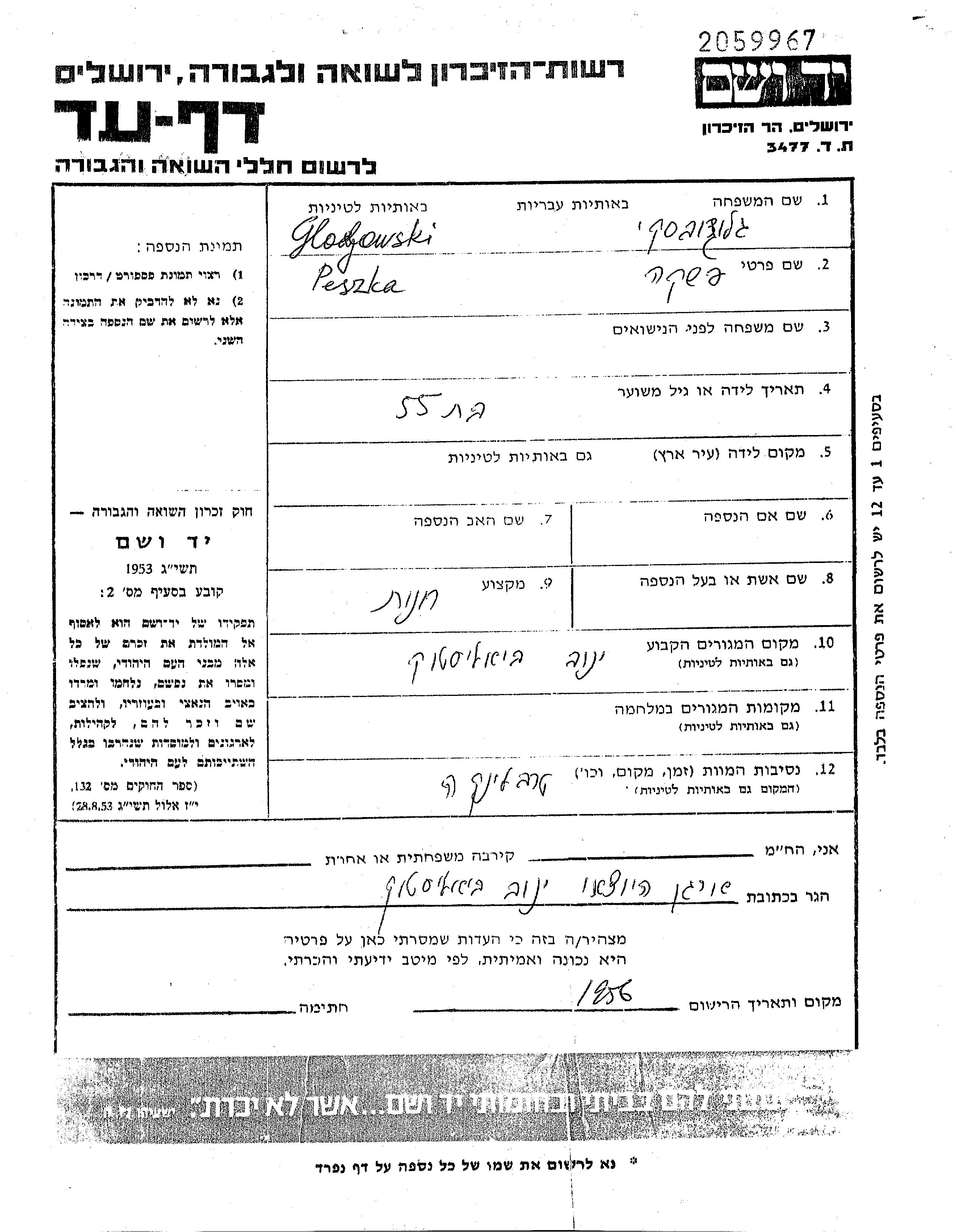 Yad Vashem - Pages of Testimony Names Memorial Collection
