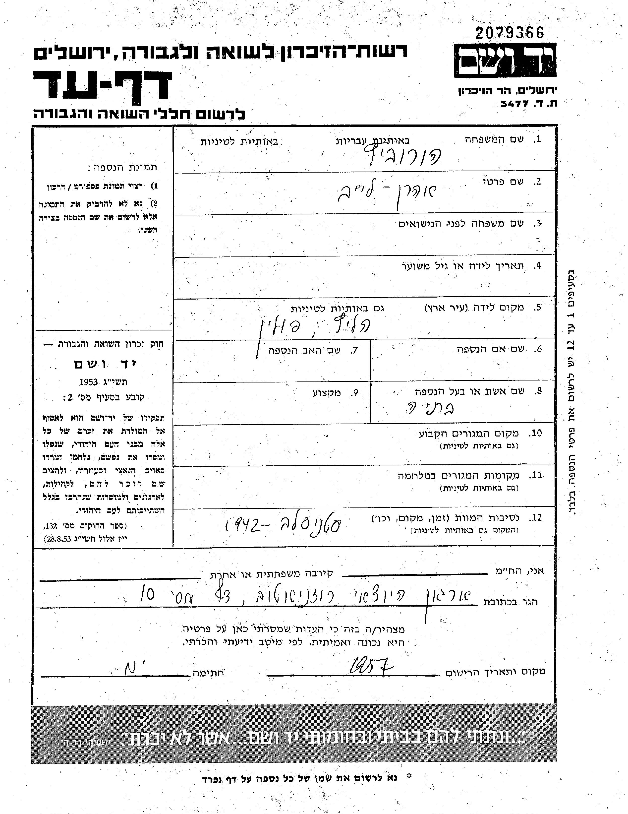 Yad Vashem - Pages of Testimony Names Memorial Collection