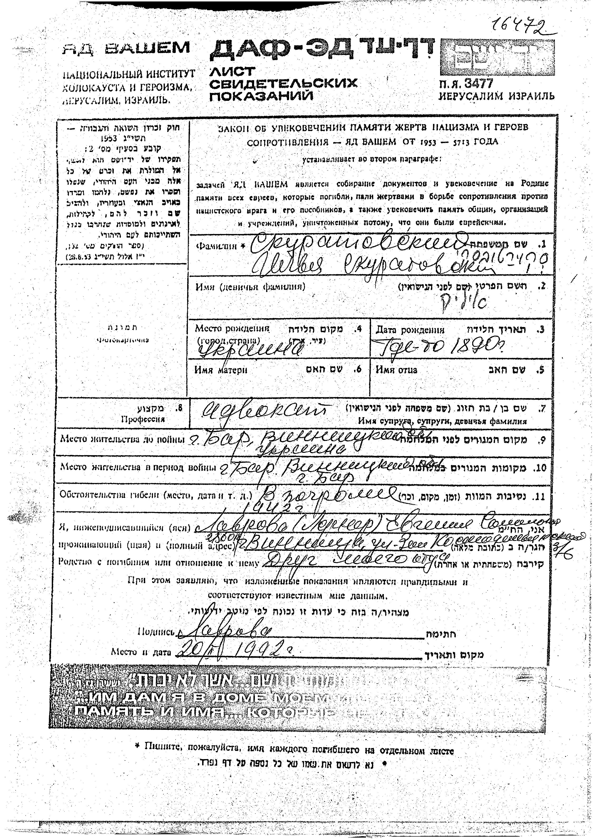 Search by last name of the submitter of the Page of Testimony, including diminutives or nicknames