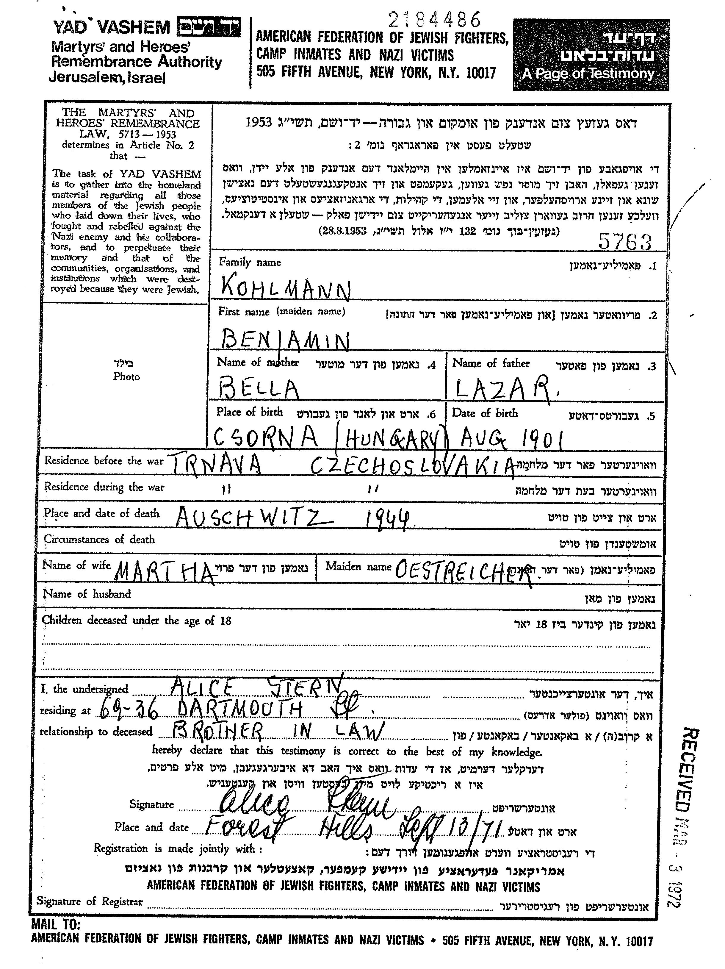 During the Shoah, Jews were murdered in a variety of ways, among them gassing, shooting, burning, drowning or burial alive, exhaustion through forced labor, starvation, epidemic diseases, deprivation of medical care and minimal hygienic conditions, and more. Some Jews took their own lives in order to escape arrest and further persecution, or to end their hopeless, relentless suffering.