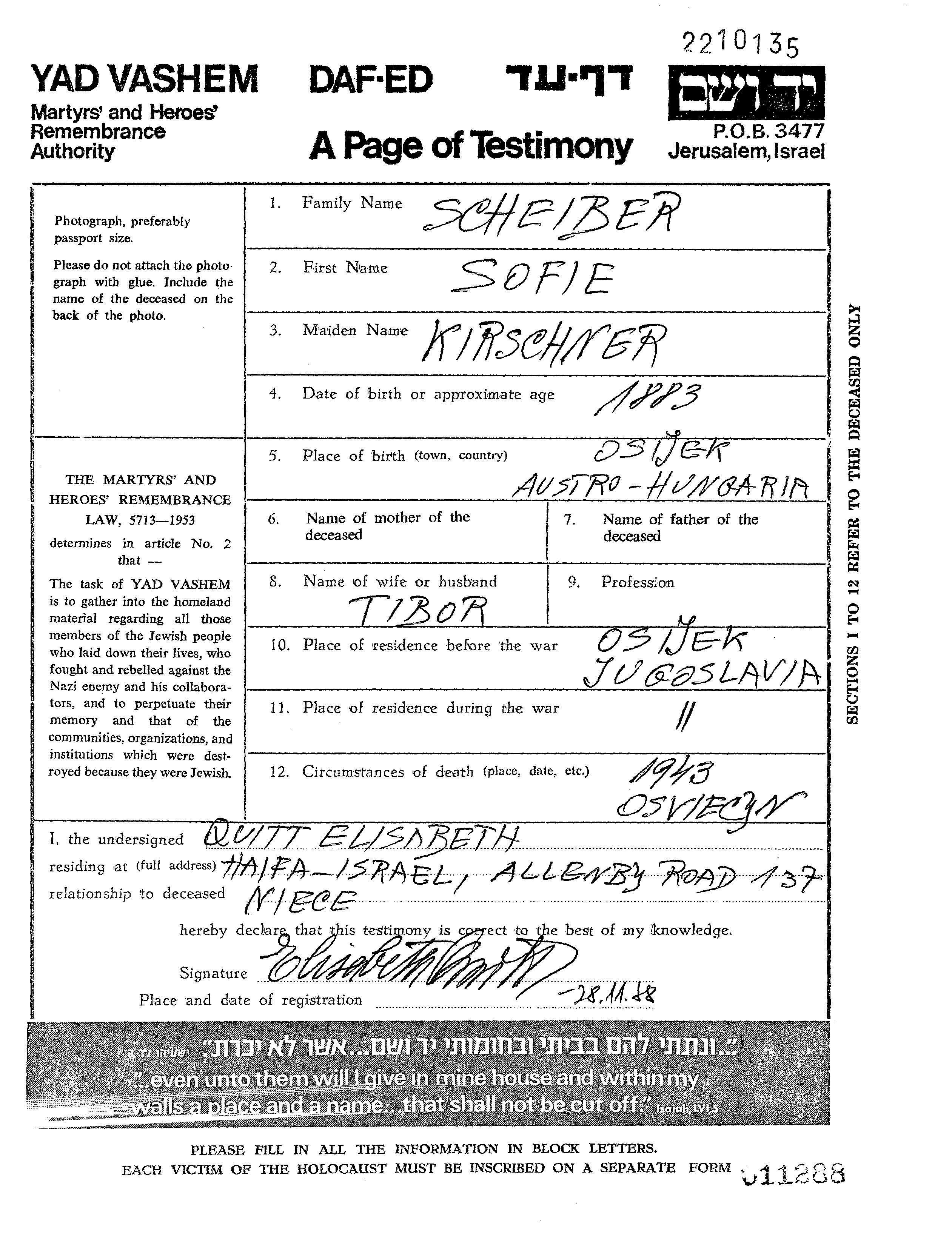 Search by last name of the submitter of the Page of Testimony, including diminutives or nicknames