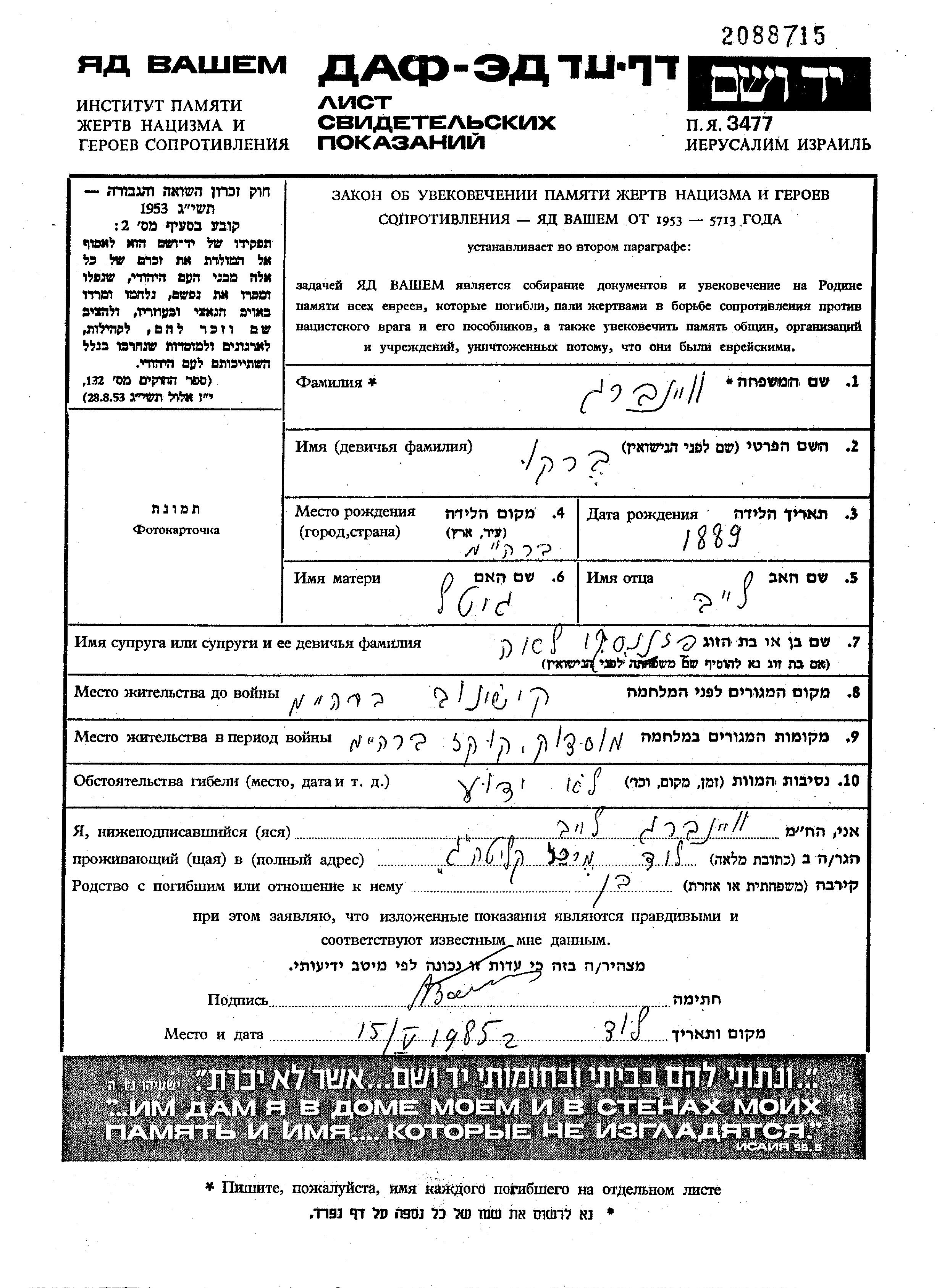 Yad Vashem - Pages of Testimony Names Memorial Collection