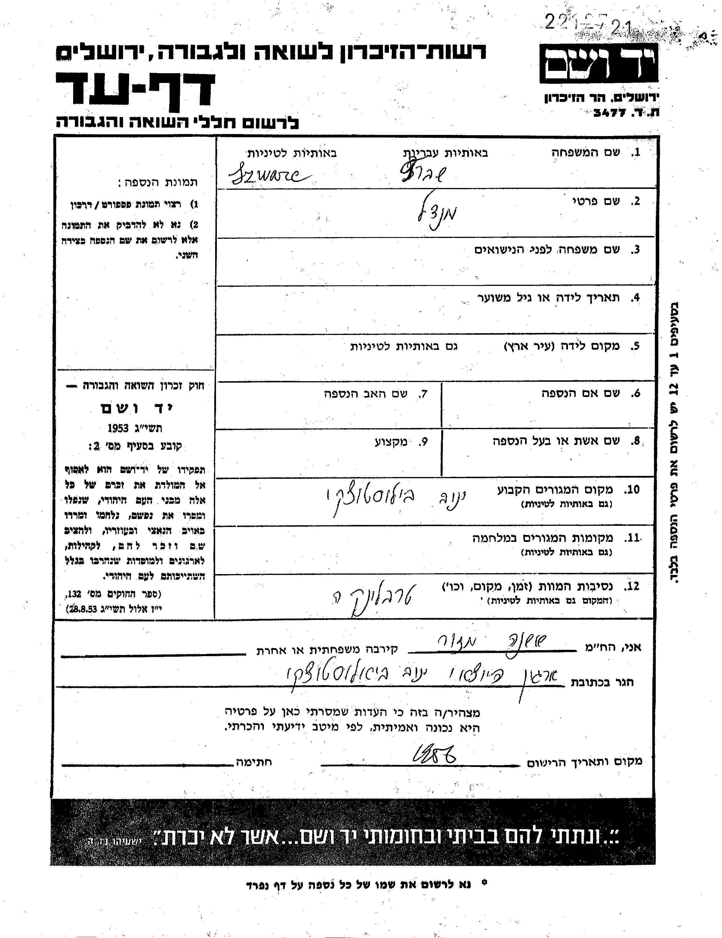 Yad Vashem - Pages of Testimony Names Memorial Collection