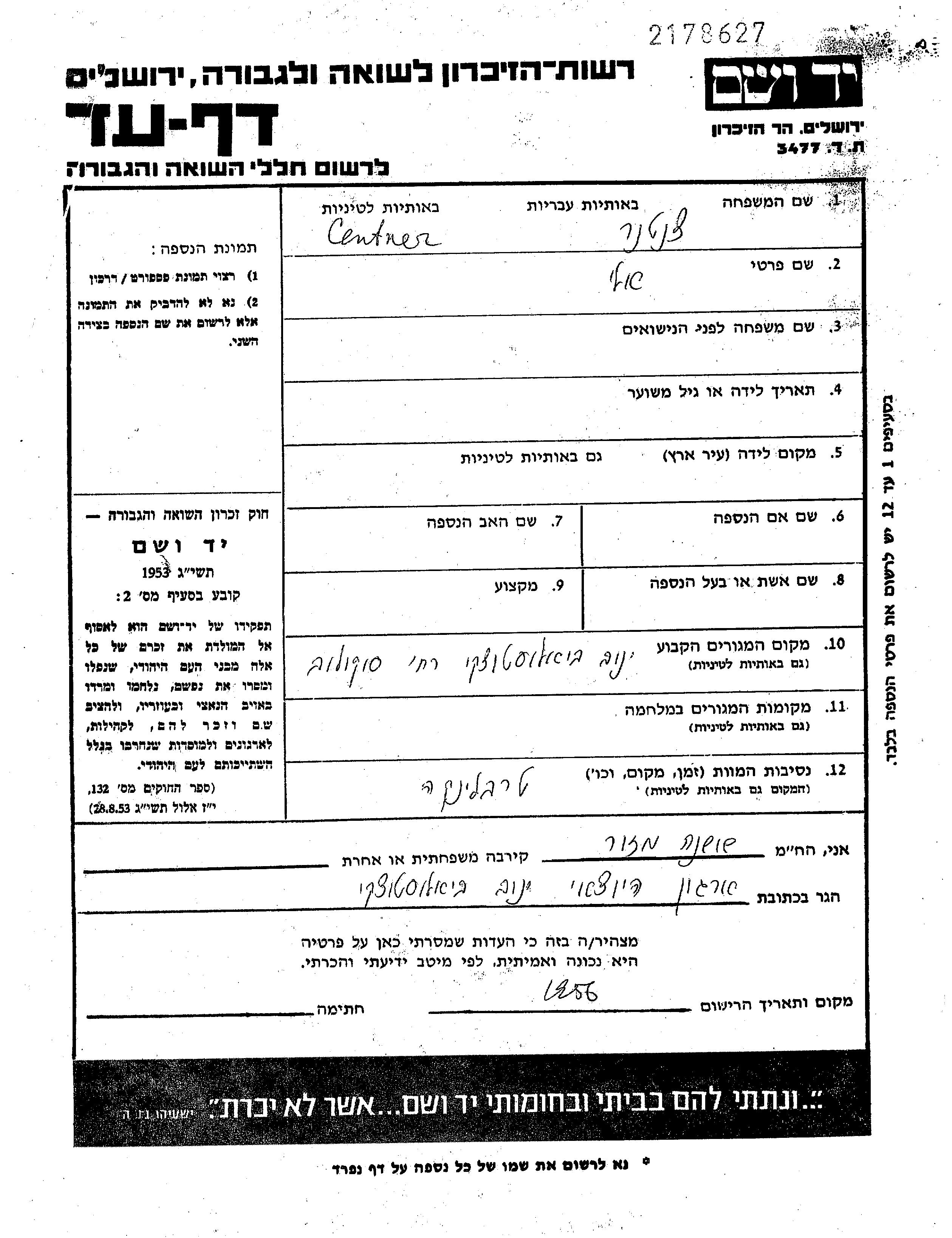 Yad Vashem - Pages of Testimony Names Memorial Collection