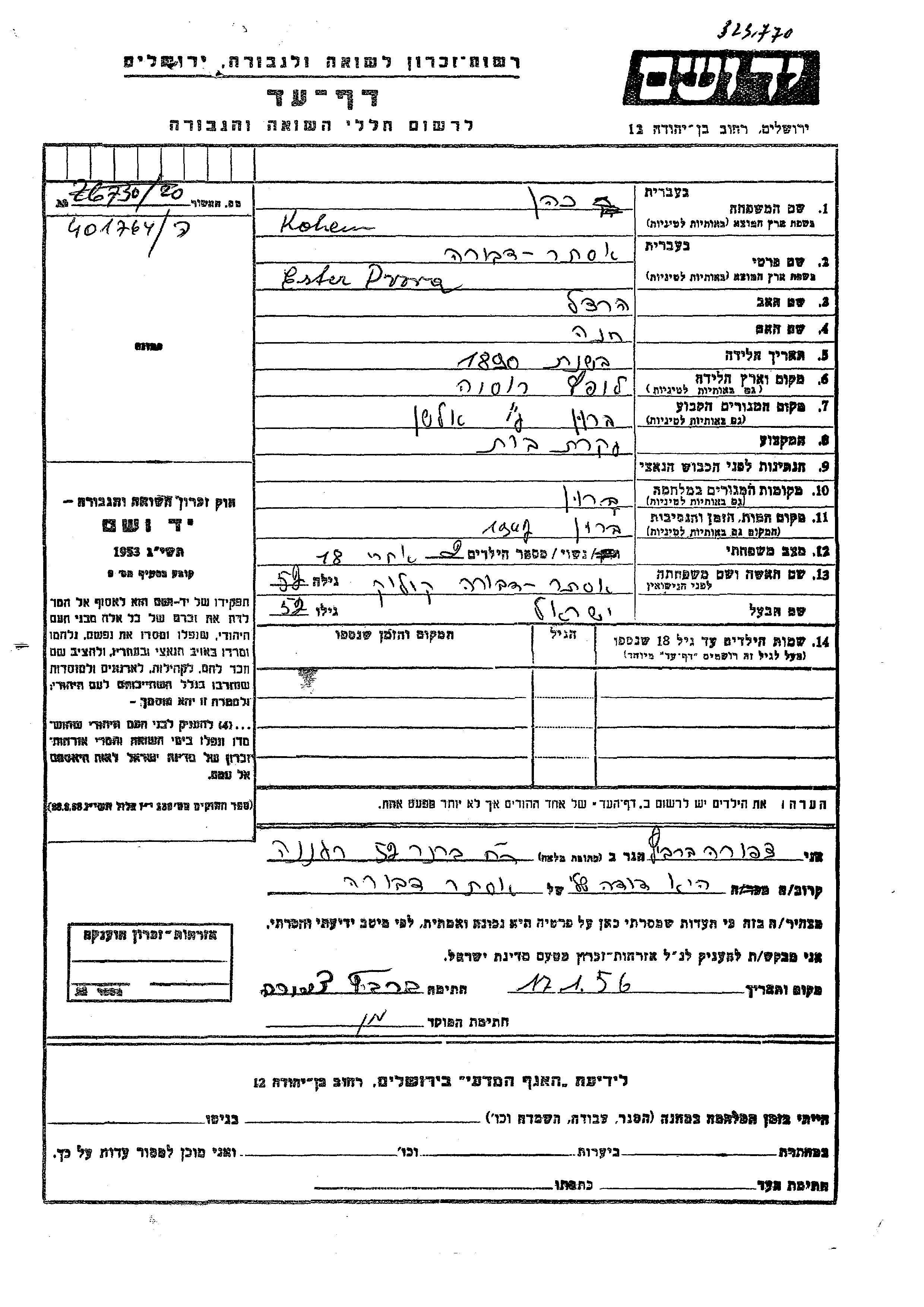 Search by last name of the submitter of the Page of Testimony, including diminutives or nicknames