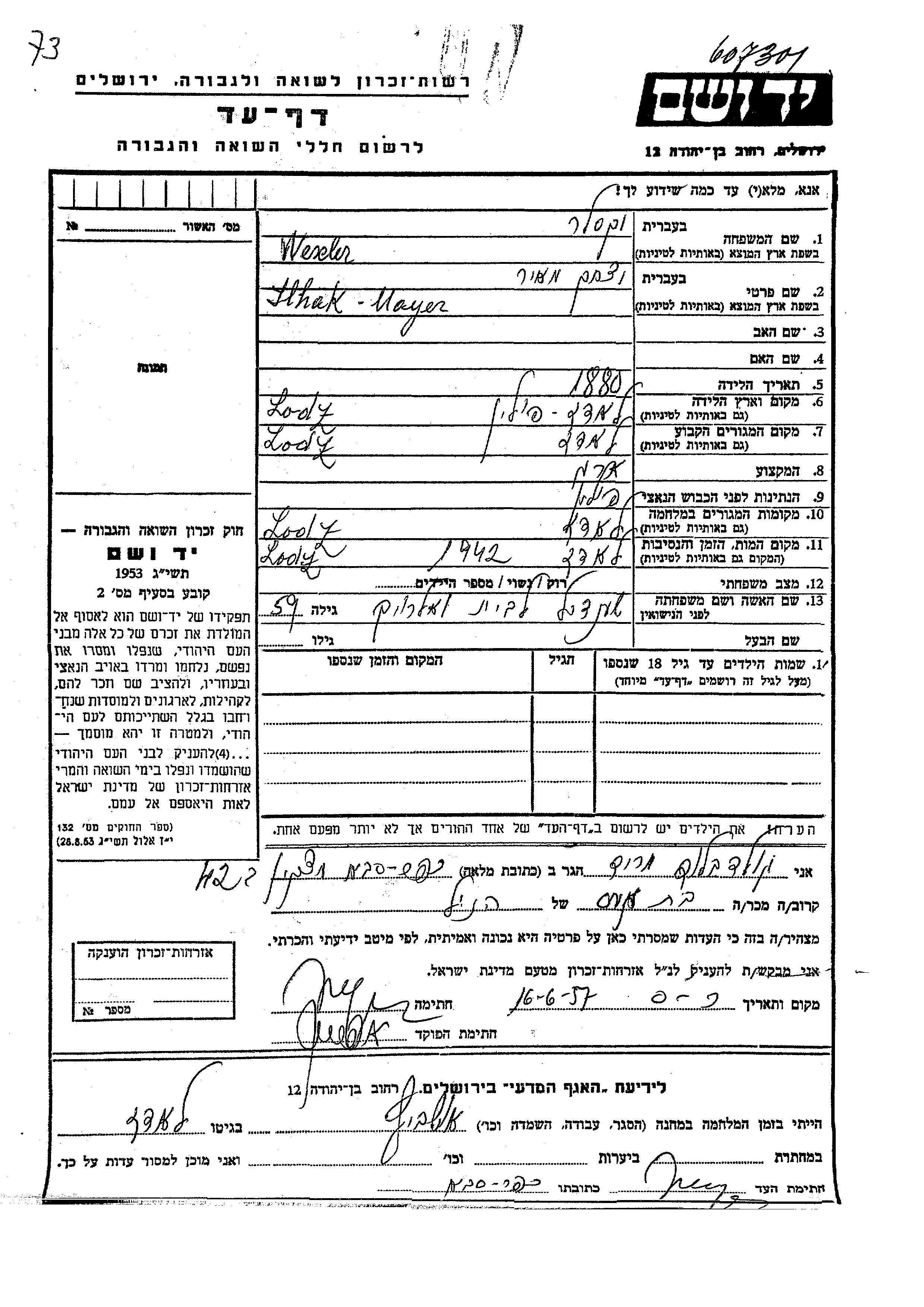 Weksler Jchak Mayer 1880 Lodz, Poland Page of Testimony