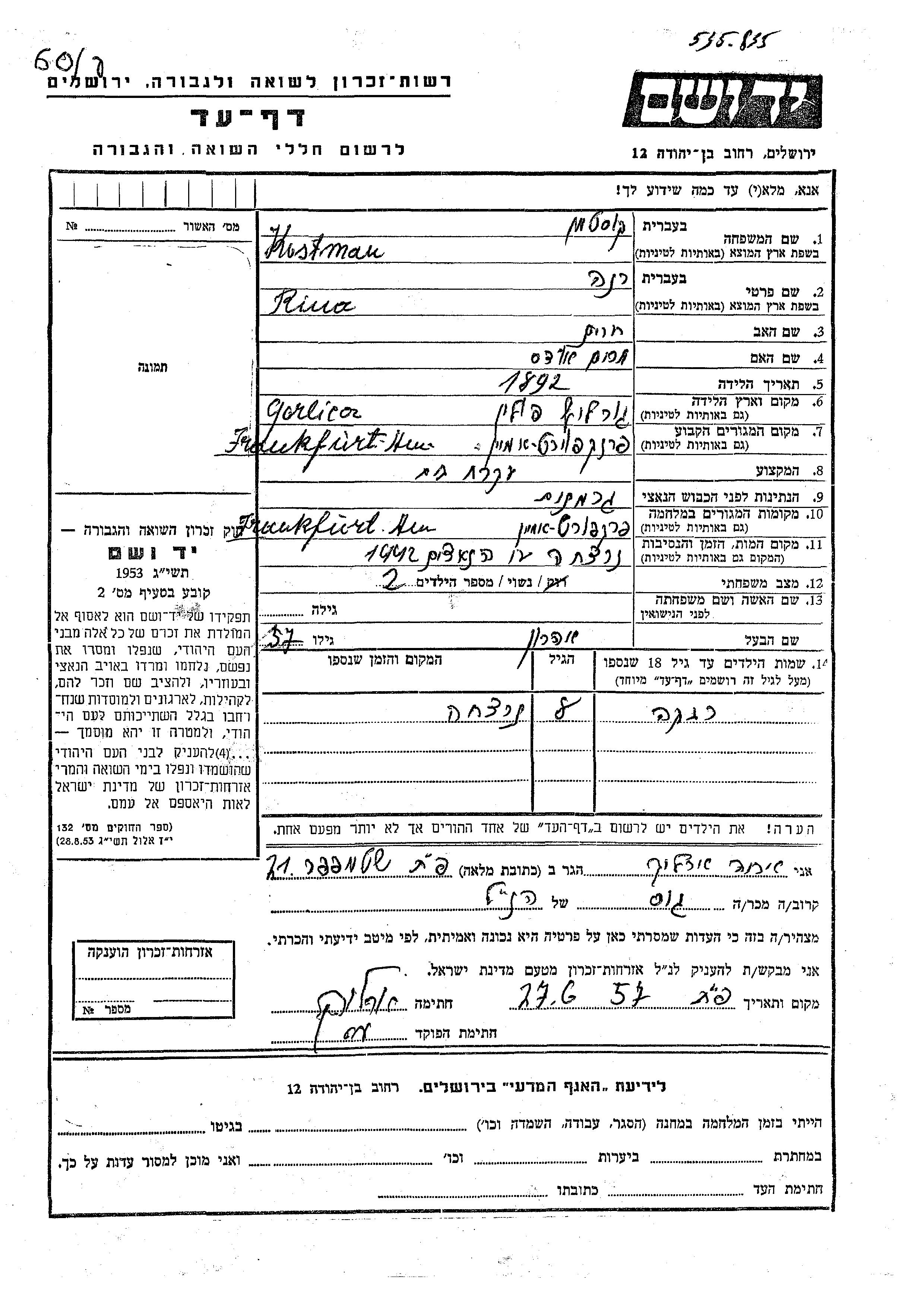 Kostman Rina Rene 1892 Frankfurt am Main, Germany Page of Testimony