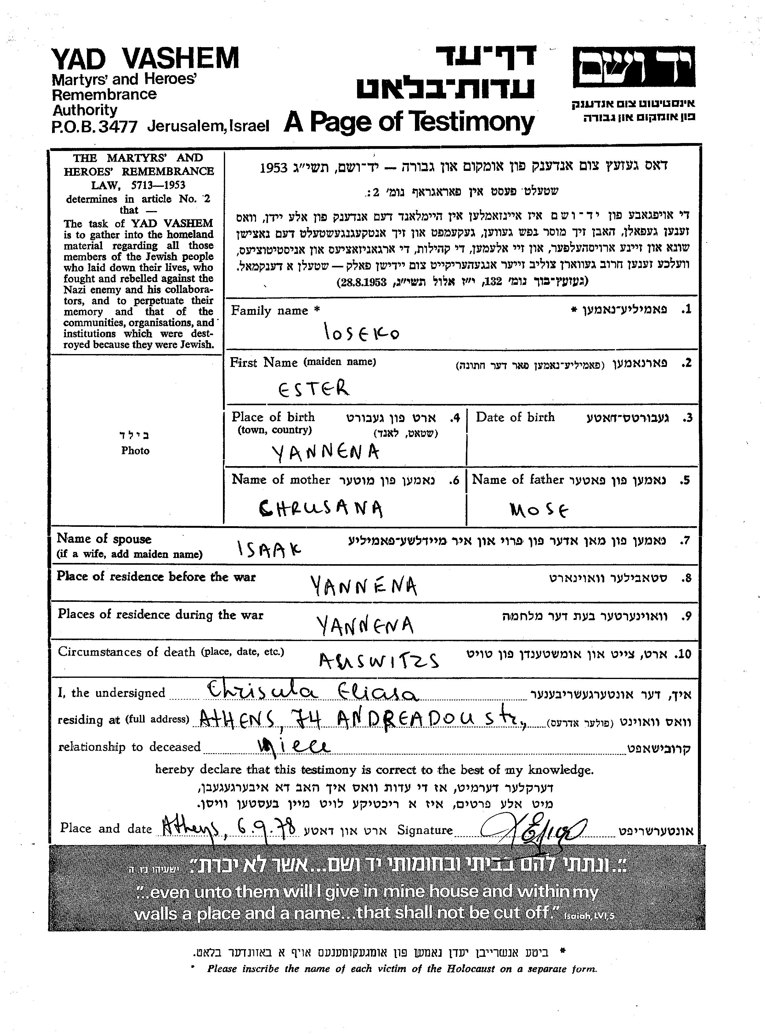 Search by last name of the submitter the Page of Testimony. This search will also show maiden names.