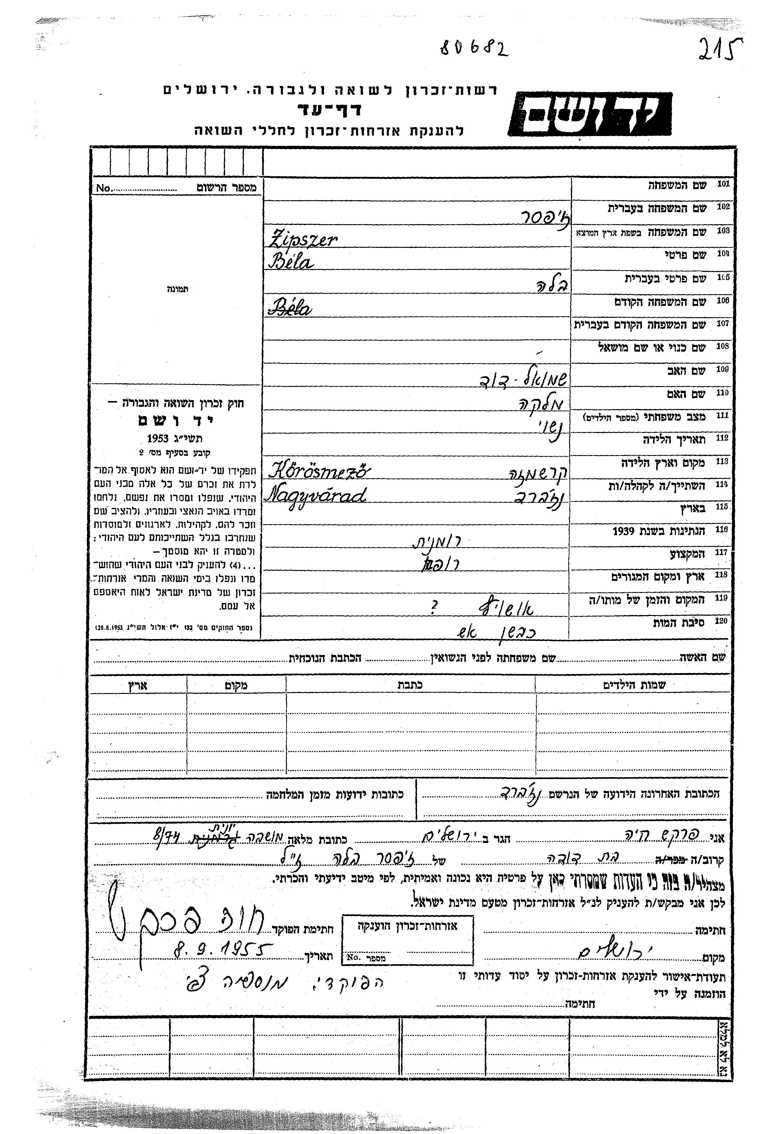 Search by name of Prewar permanent residence, Town, Village, District, Region or Country.
