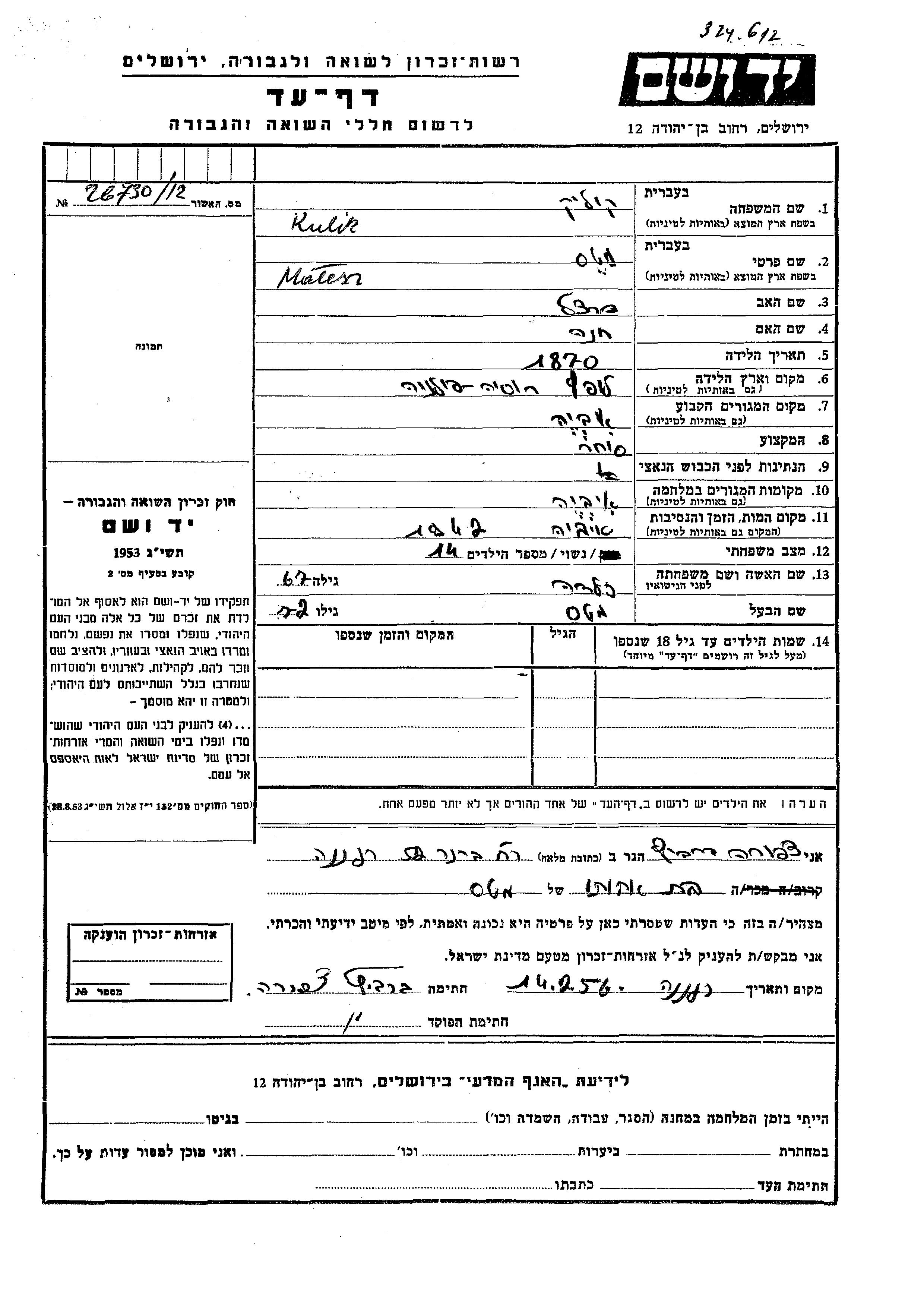 Yad Vashem - Pages of Testimony Names Memorial Collection