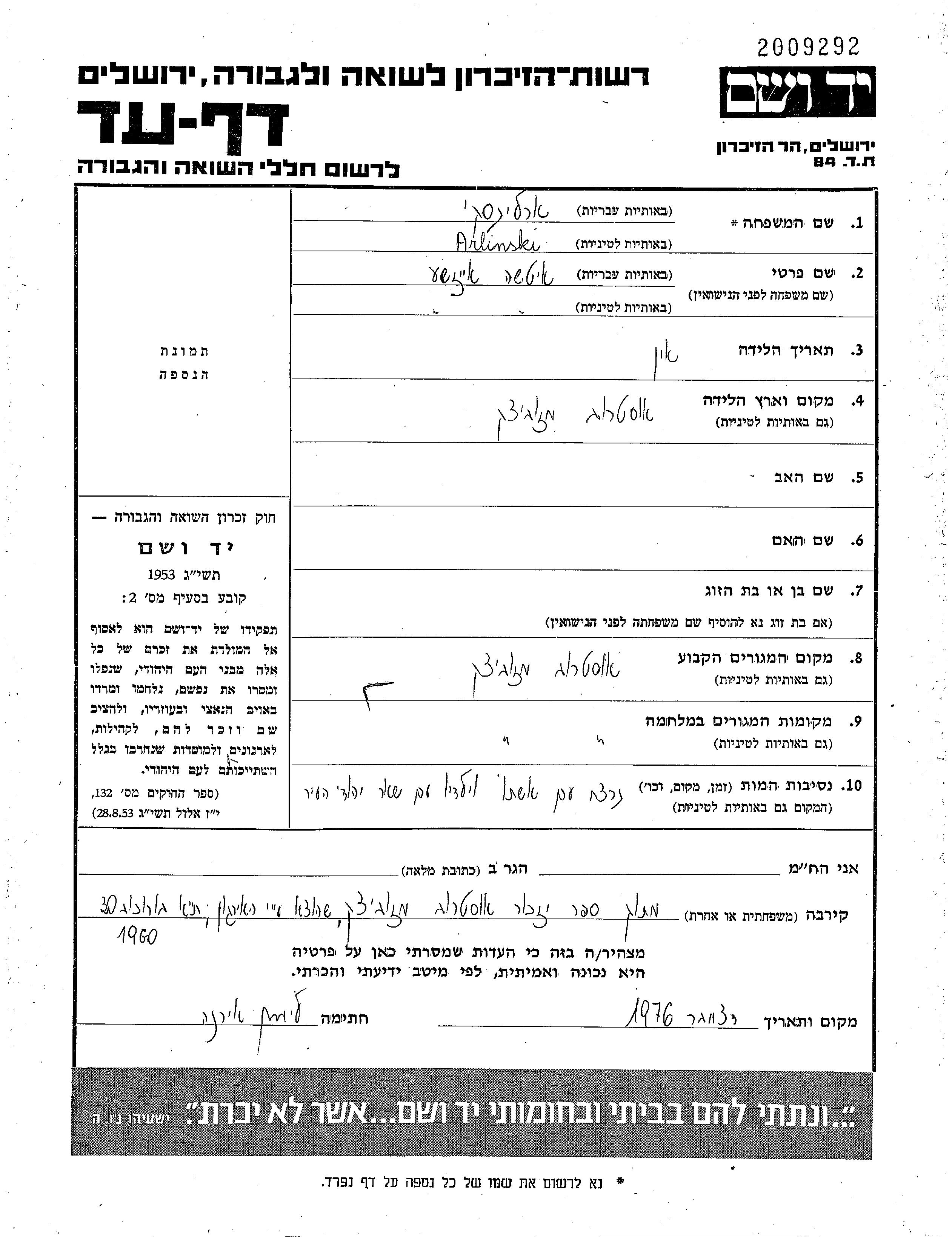 Yad Vashem - Pages of Testimony Names Memorial Collection