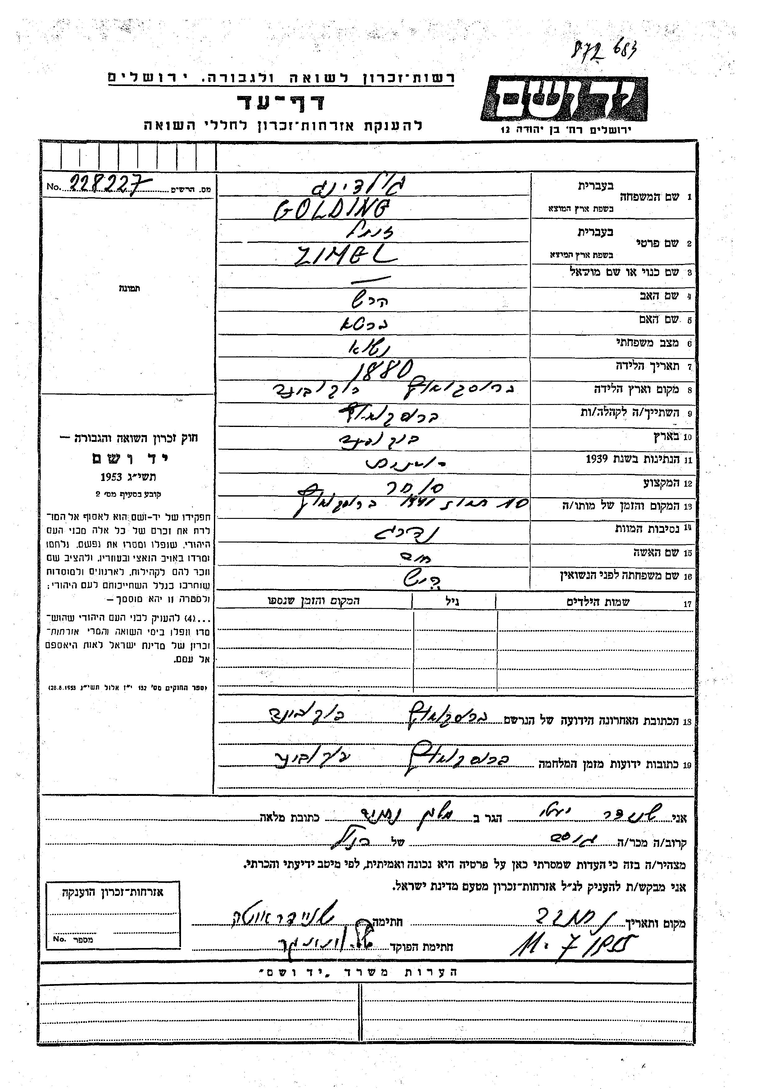 Yad Vashem - Pages of Testimony Names Memorial Collection
