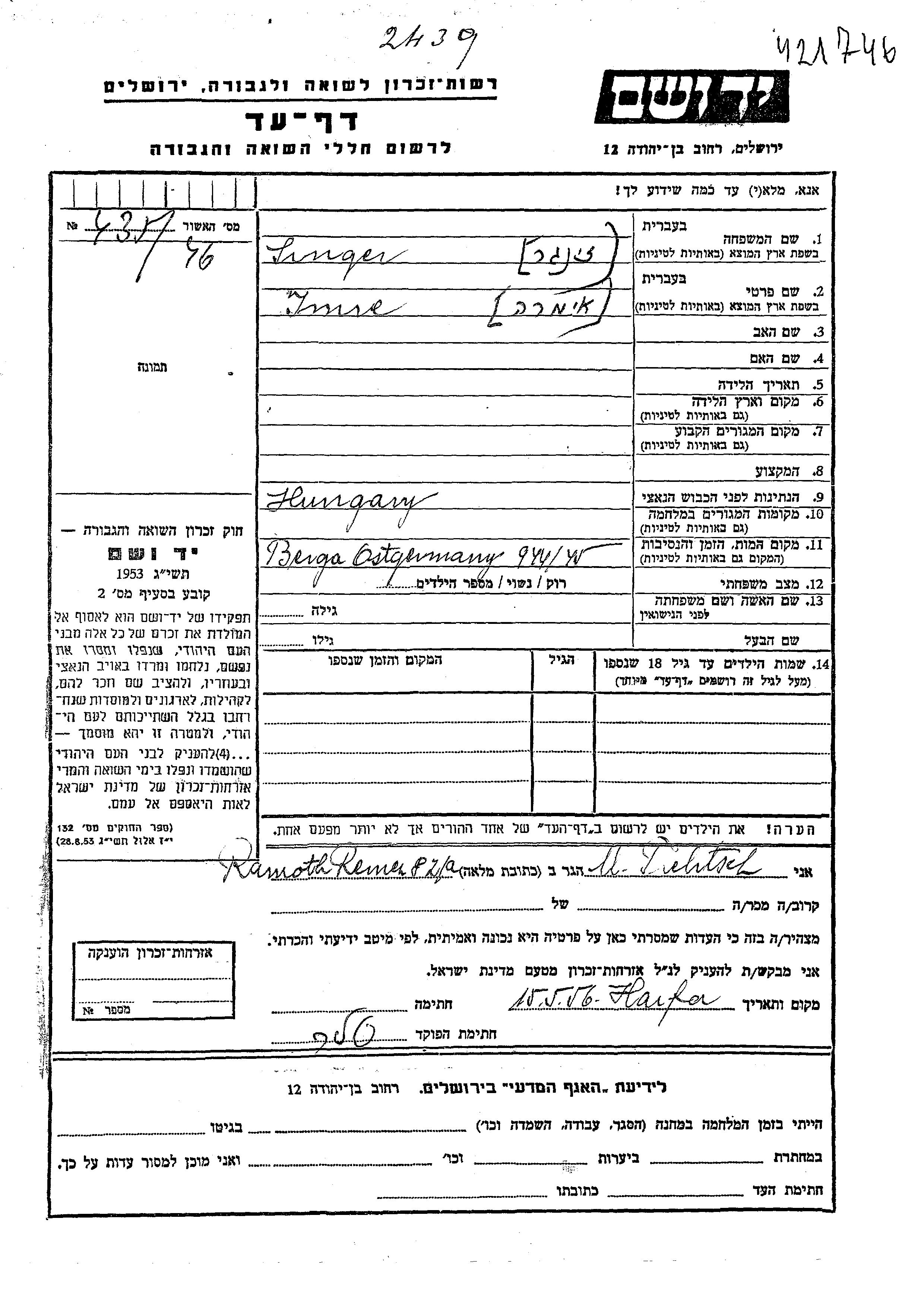 Yad Vashem - Pages of Testimony Names Memorial Collection
