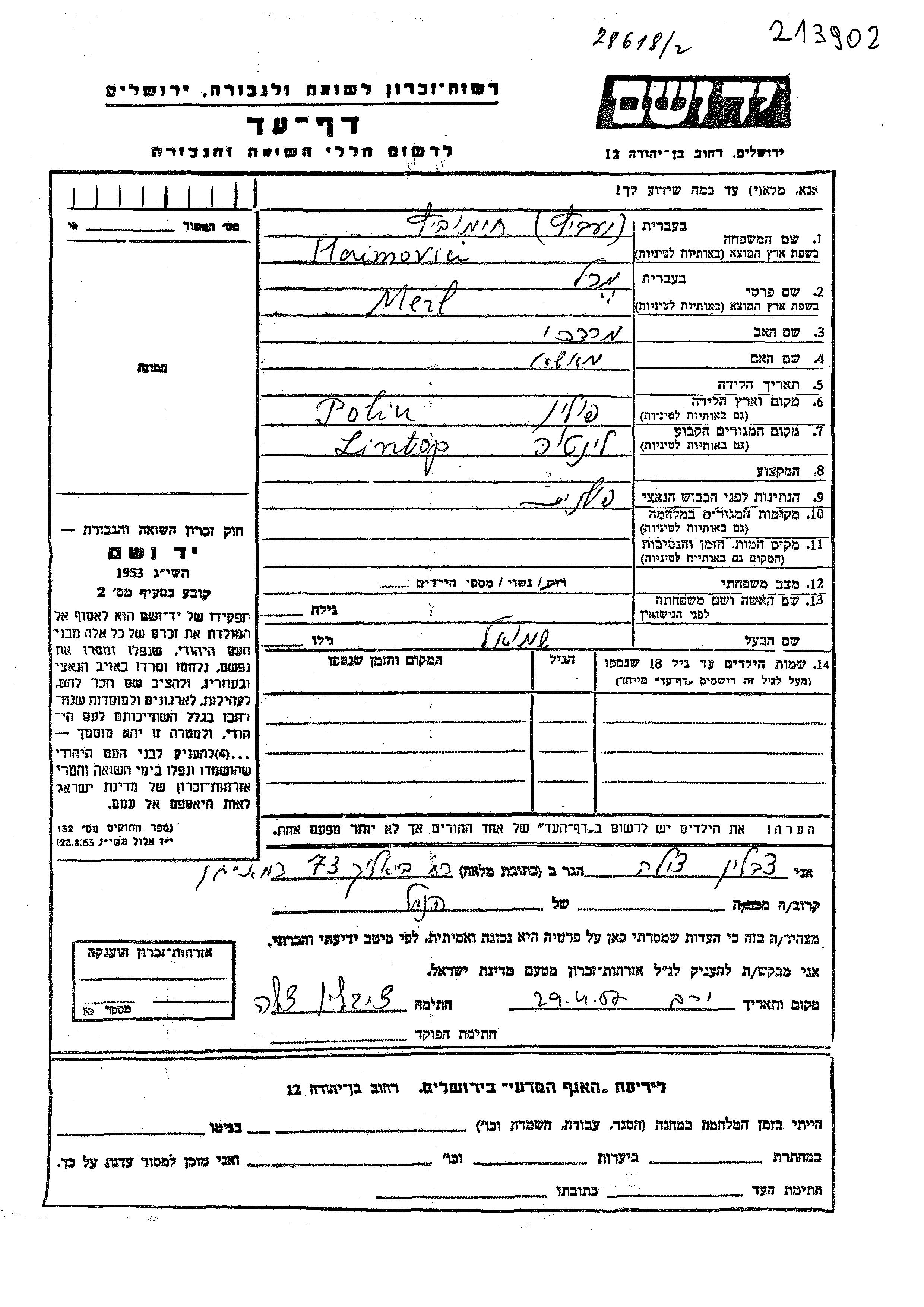 Haimovici Merl Lintupy, Poland Page of Testimony