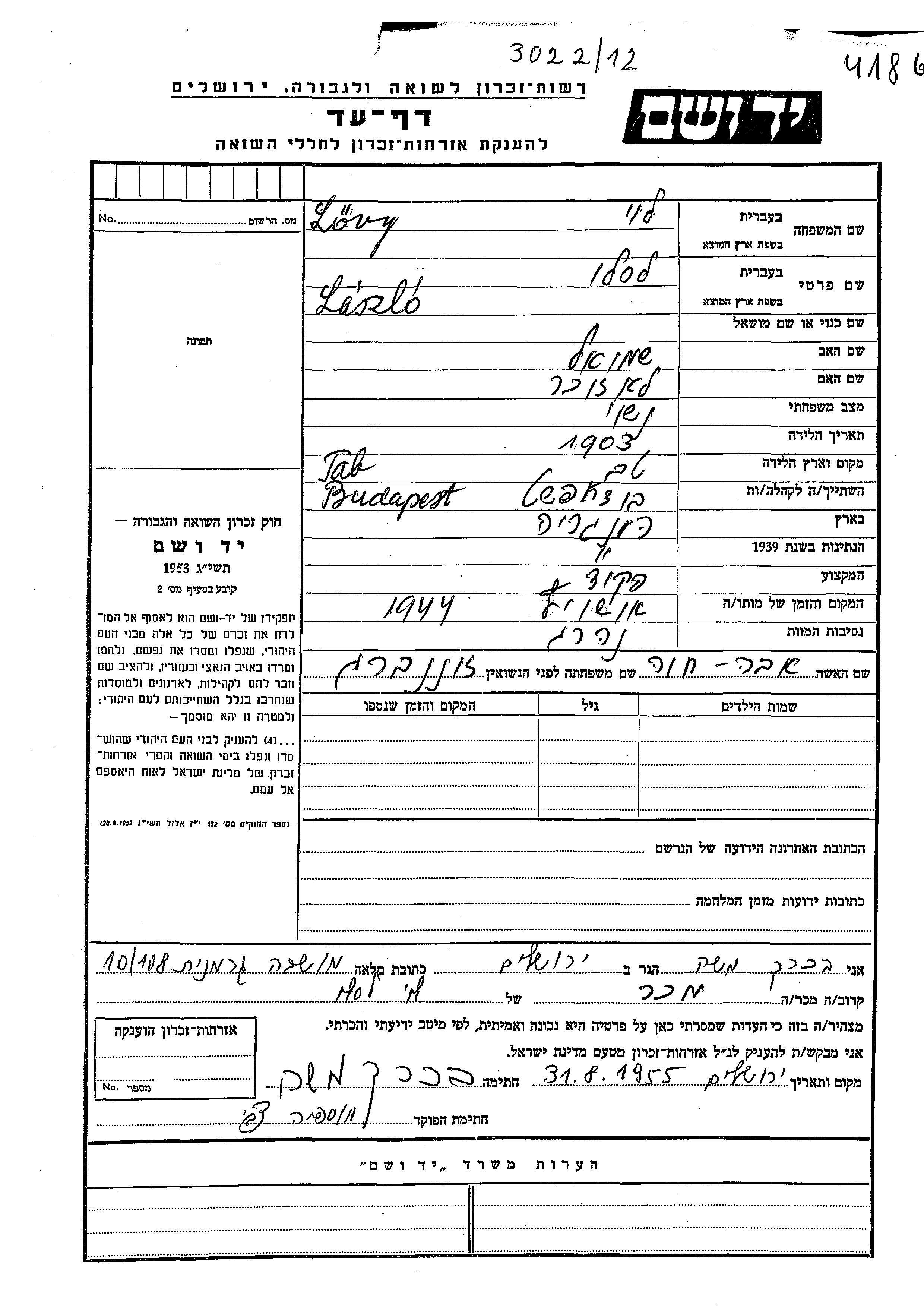 Yad Vashem - Pages of Testimony Names Memorial Collection