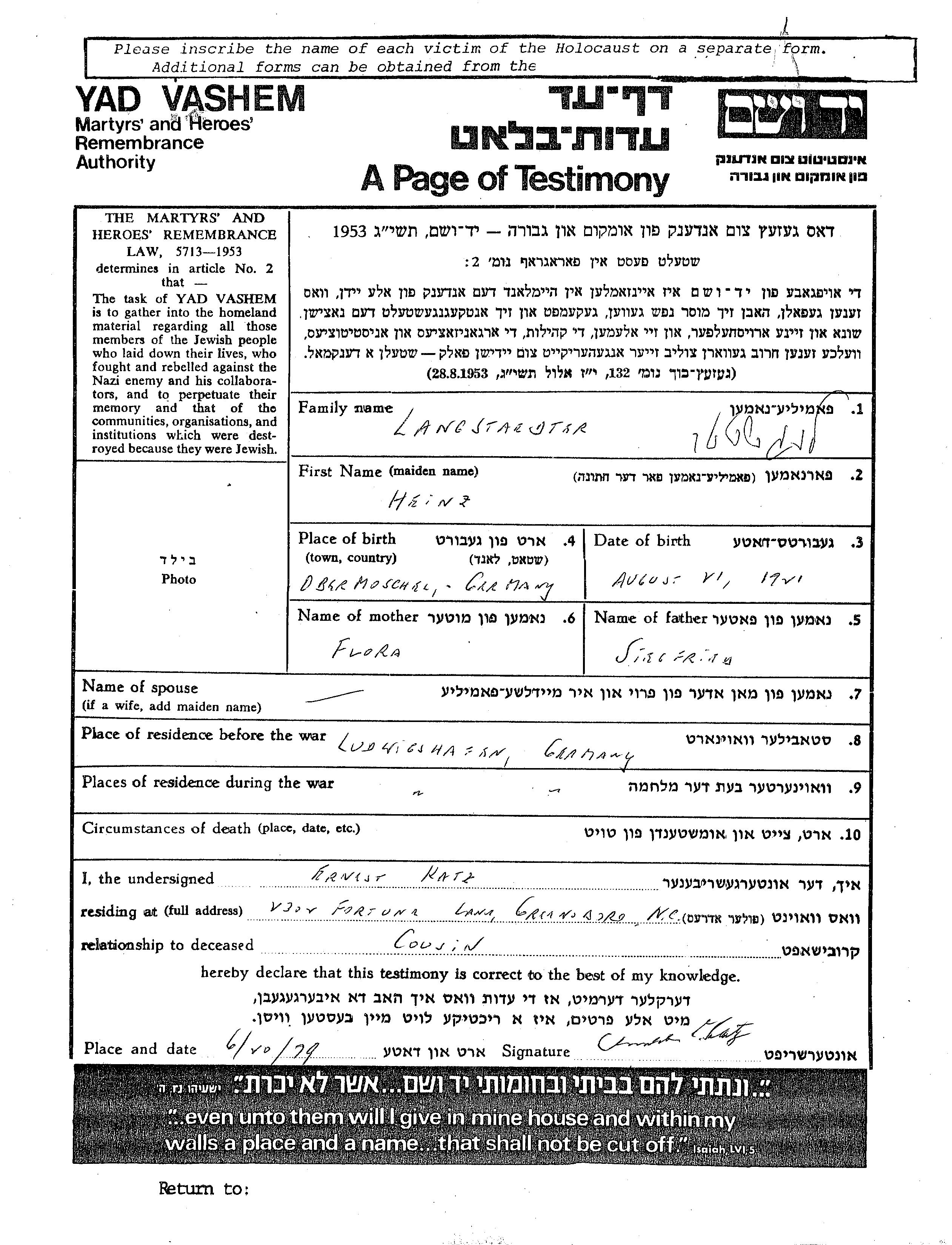 Langstaedter Heinz Ludwigshafen, Germany Page of Testimony