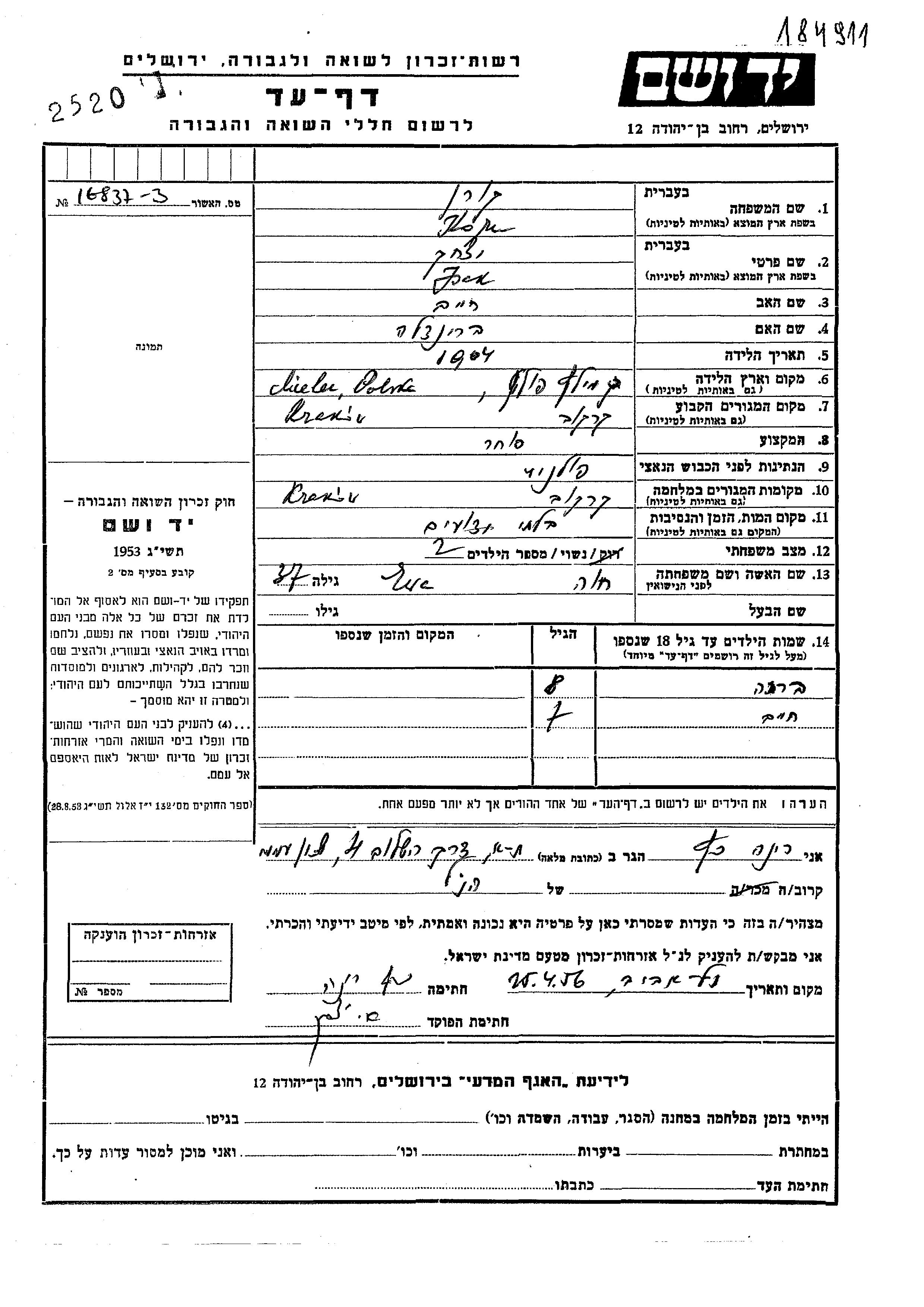 Yad Vashem - Pages of Testimony Names Memorial Collection